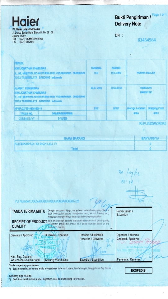 Penerima | LUSY AMANDA - HAIER BANDUNG |