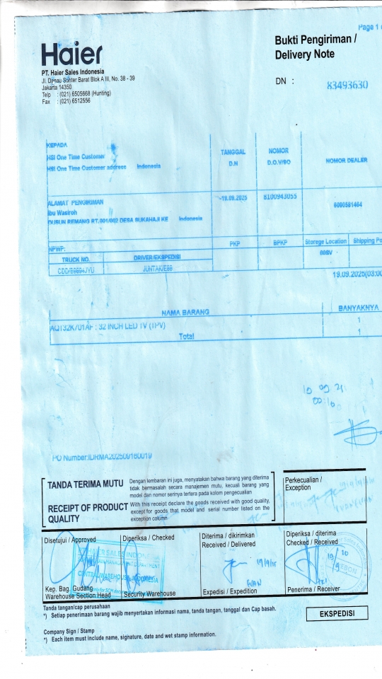 Berangkat, Tiba, Bongkar | 2025-09-19, 2025-09-19, 2025-09-19 |