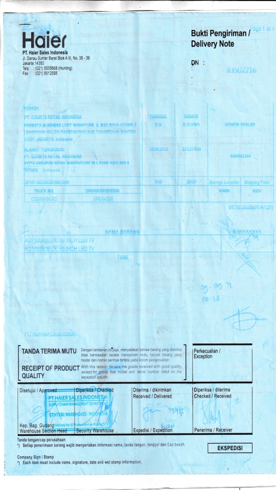 Alamat PT. COURTS RETAIL INDONESIA KOTA HARAPAN INDAH WAREHOUSE BULEVAR KAVLING 9 BEKASI ID