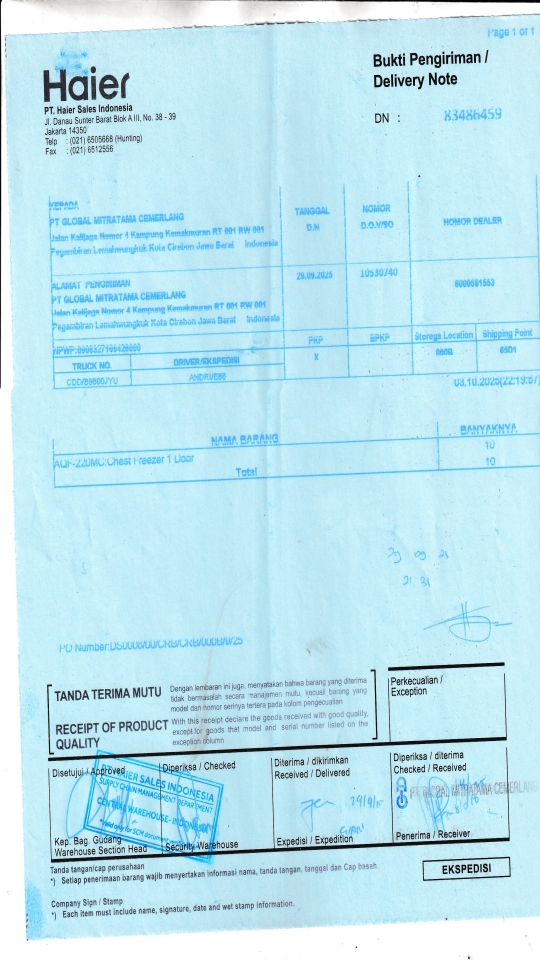 Penerima PT GLOBAL MITRATAMA CEMERLANG