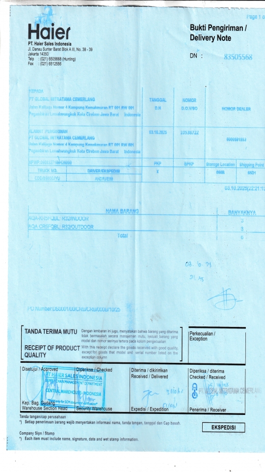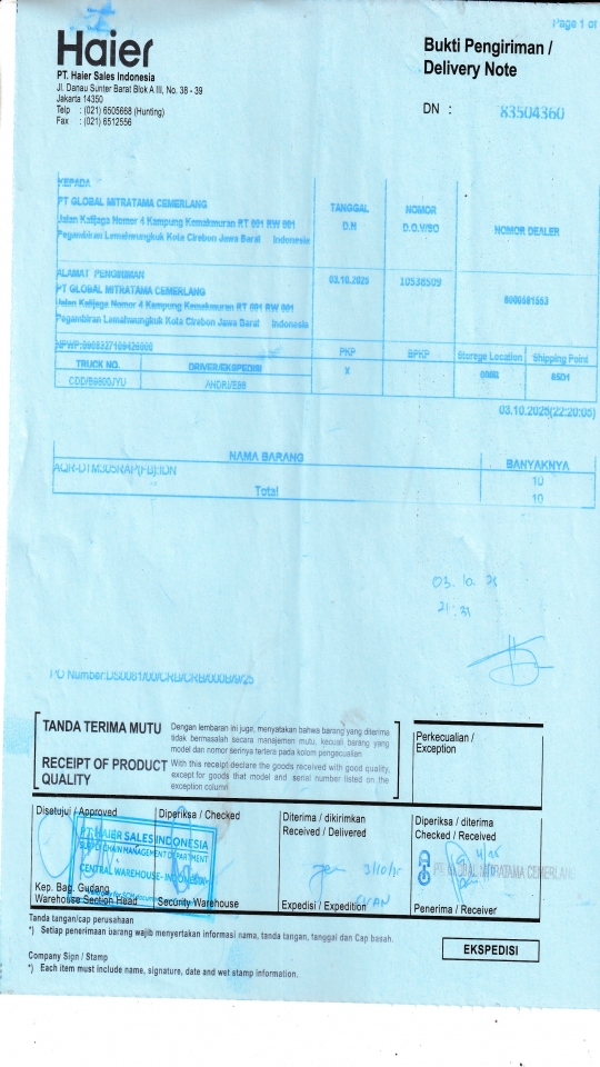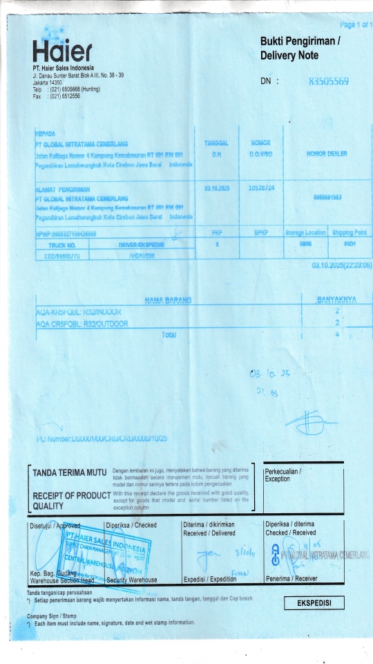 Berangkat, Tiba, Bongkar 2025-10-04, 2025-10-04, 2025-10-04