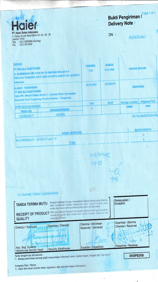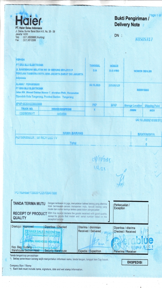 Berangkat, Tiba, Bongkar 2025-10-06, 2025-10-06, 2025-10-06