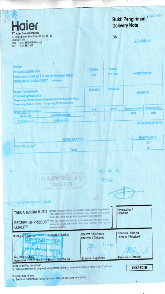 Berangkat, Tiba, Bongkar 2025-10-06, 2025-10-06, 2025-10-06