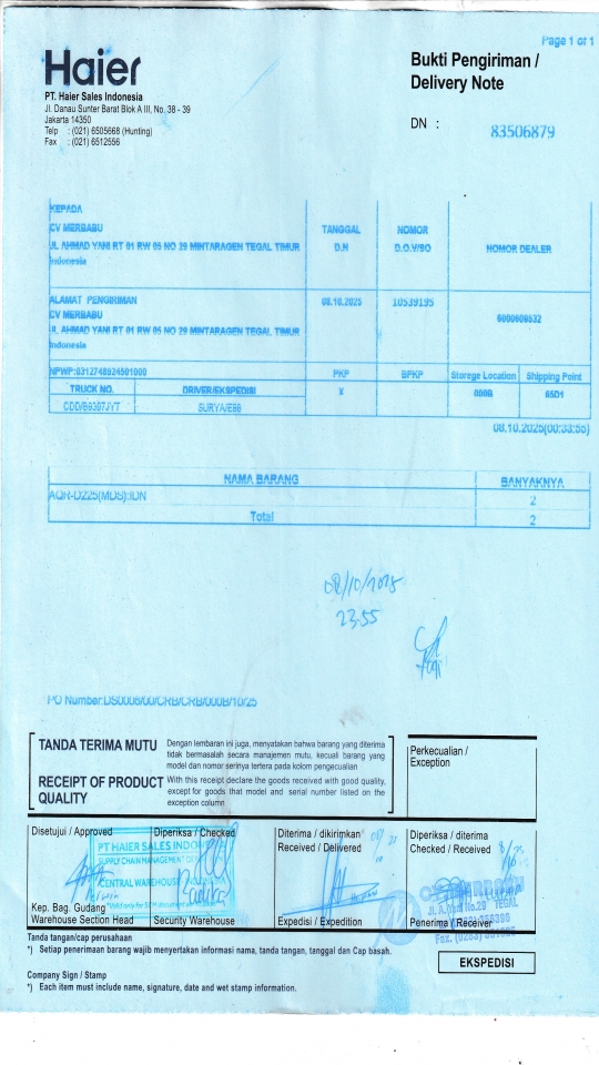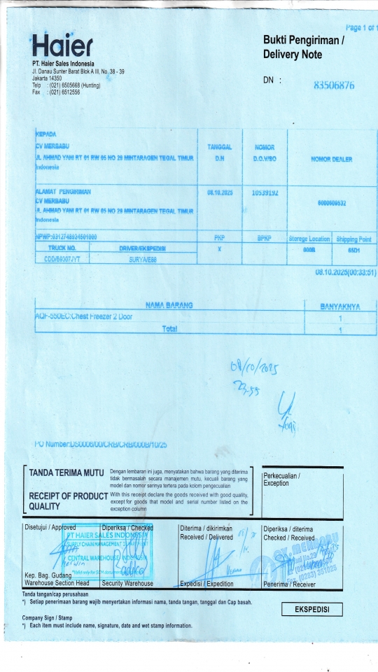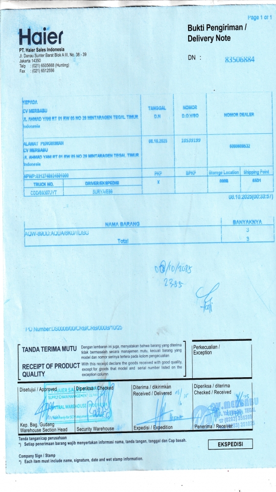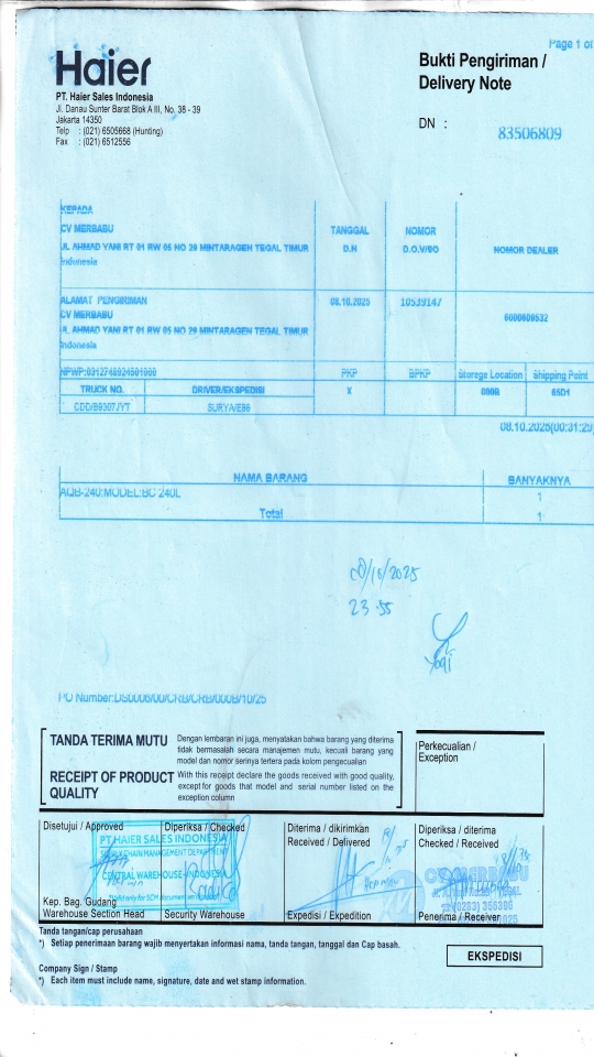 Berangkat, Tiba, Bongkar | 2025-10-08, 2025-10-08, 2025-10-08 |