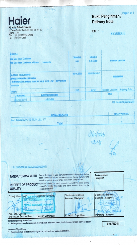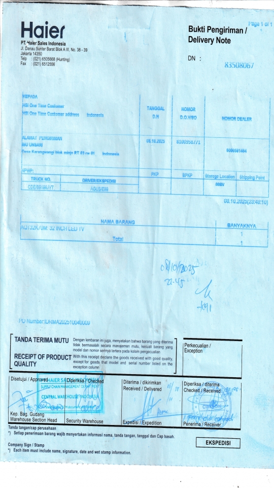 Berangkat, Tiba, Bongkar | 2025-10-09, 2025-10-09, 2025-10-09 |