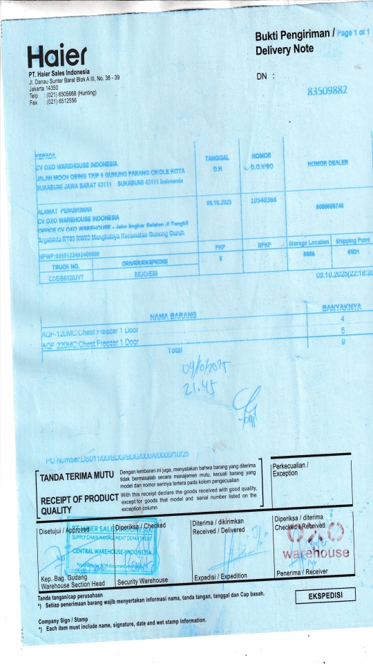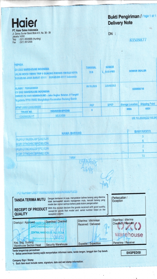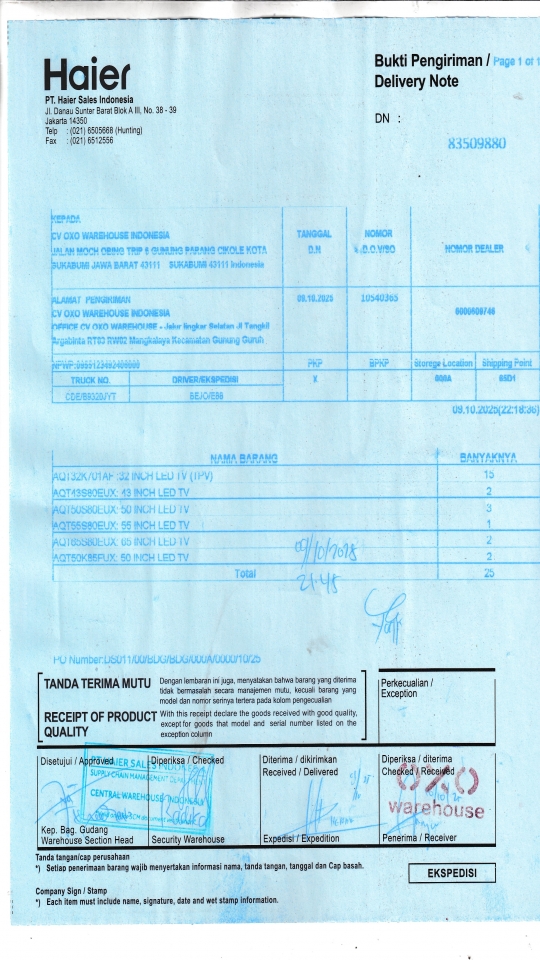 Berangkat, Tiba, Bongkar 2025-10-10, 2025-10-10, 2025-10-10