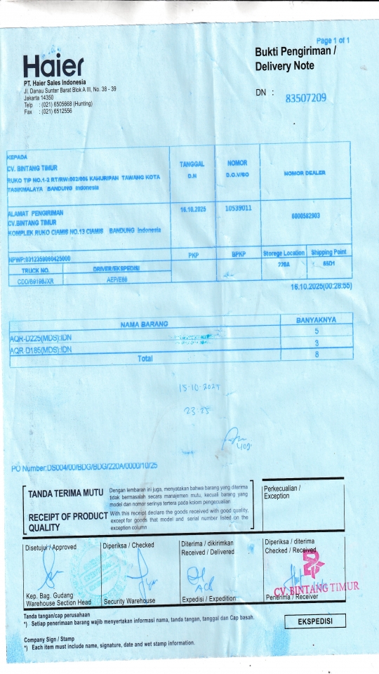 Berangkat, Tiba, Bongkar | 2025-10-16, 2025-10-16, 2025-10-16 |