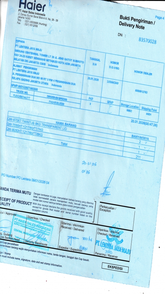 Berangkat, Tiba, Bongkar 2026-01-20, 2026-01-20, 2026-01-20