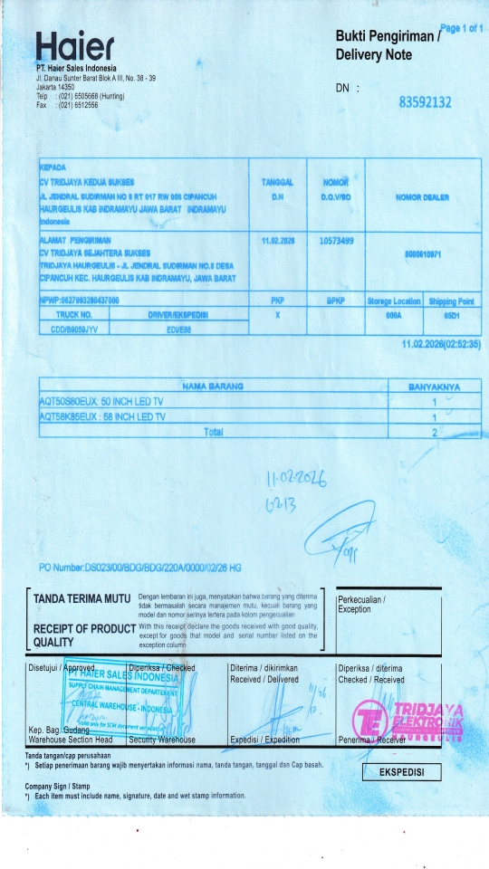 CV TRIDJAYA SEJAHTERA SUKSES TRIDJAYA HAURGEULIS - JL JENDRAL SUDIRMAN NO.8 DESA CIPANCUH KEC. HAURGEULIS KAB INDRAMAYU, JAWA BARAT Indramayu 45264 ID |