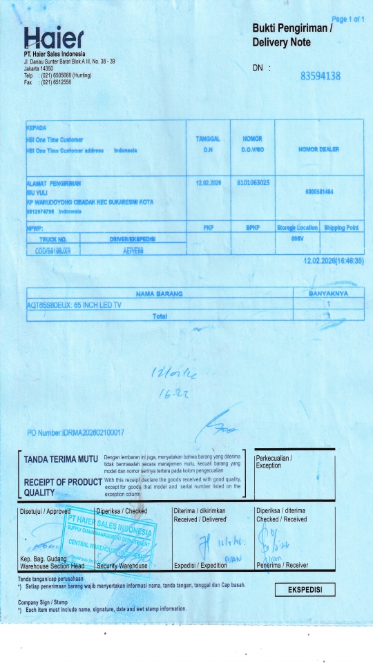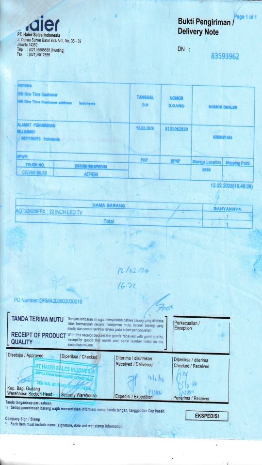 | Customer | PT. HAIER SALES INDONESIA |