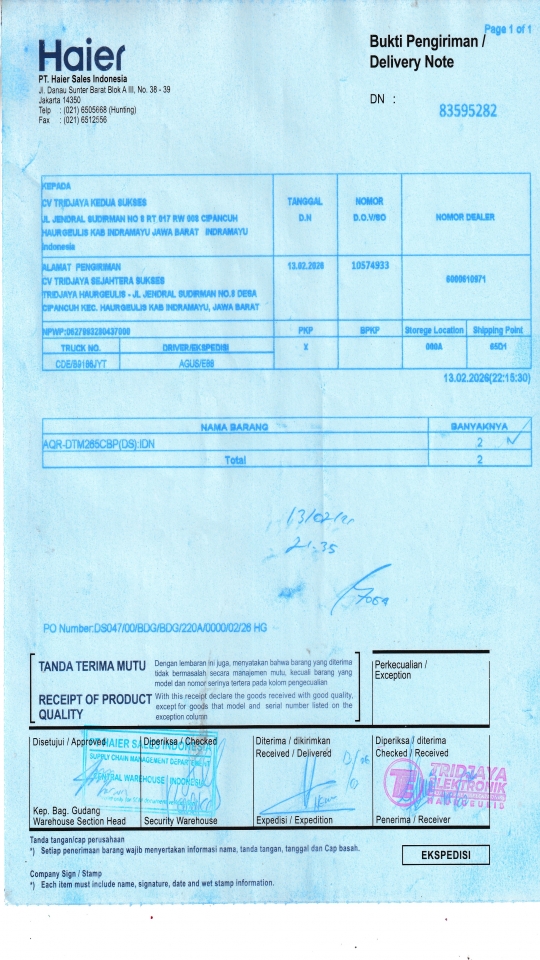 CV TRIDJAYA SEJAHTERA SUKSES TRIDJAYA HAURGEULIS - JL JENDRAL SUDIRMAN NO.8 DESA CIPANCUH KEC. HAURGEULIS KAB INDRAMAYU, JAWA BARAT Indramayu 45264 ID |