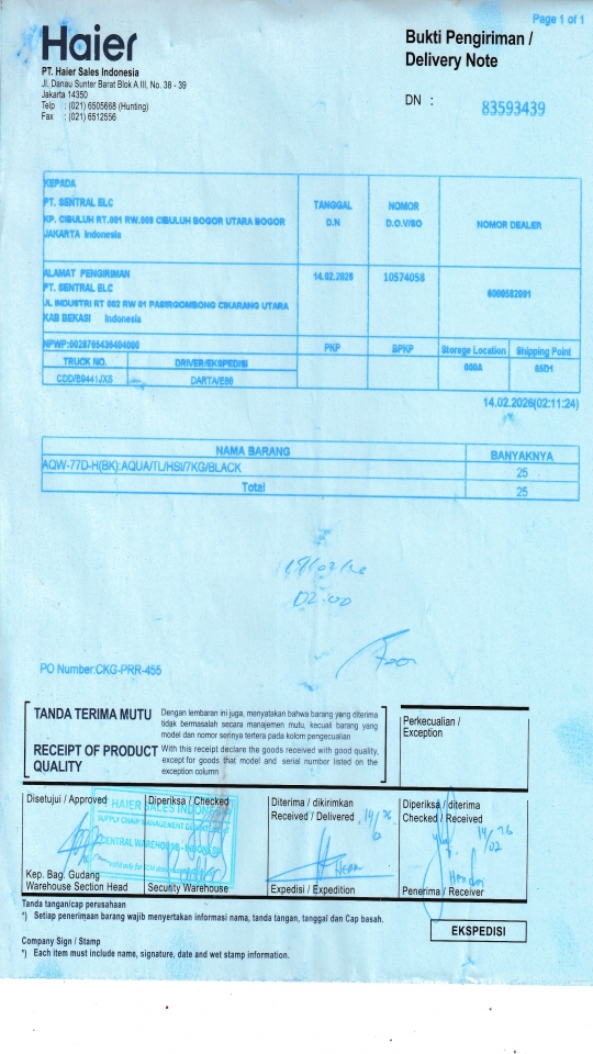 | Customer | PT. HAIER SALES INDONESIA |