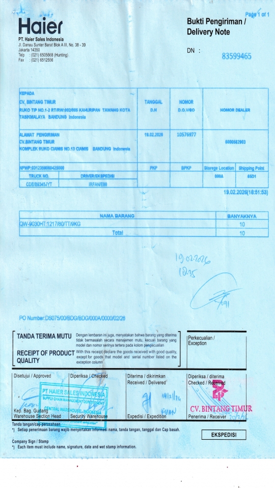 | Customer | PT. HAIER SALES INDONESIA |