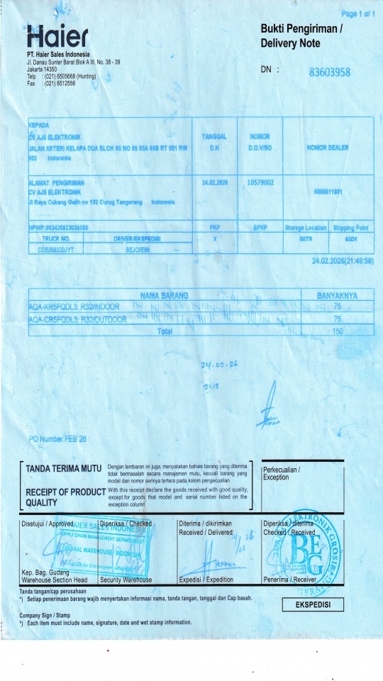 | Berangkat, Tiba, Bongkar | 2026-02-25, 2026-02-25, 2026-02-25 |