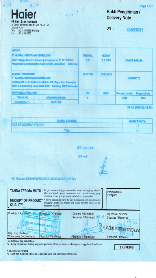 PT GLOBAL MITRATAMA CEMERLANG Gudang AIO 2 - Jl. Soekarno-Hatta No.318, Kopo, Kec. Bojongloa Kaler, Kota Bandung Jawa Barat 40233 Bandung 40233 ID |