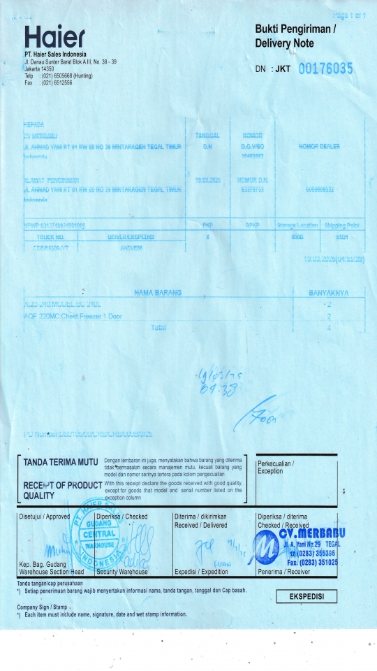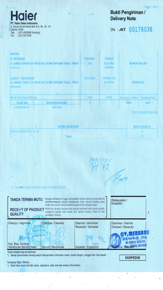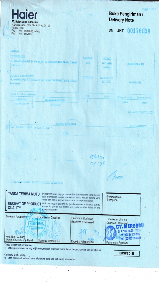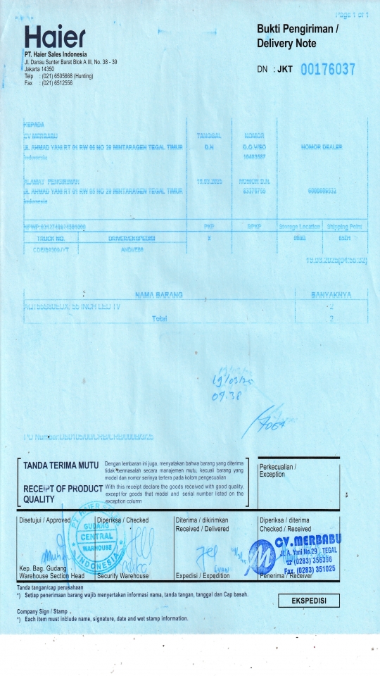 | Penerima | NURHAYATI - HAIER CIREBON |