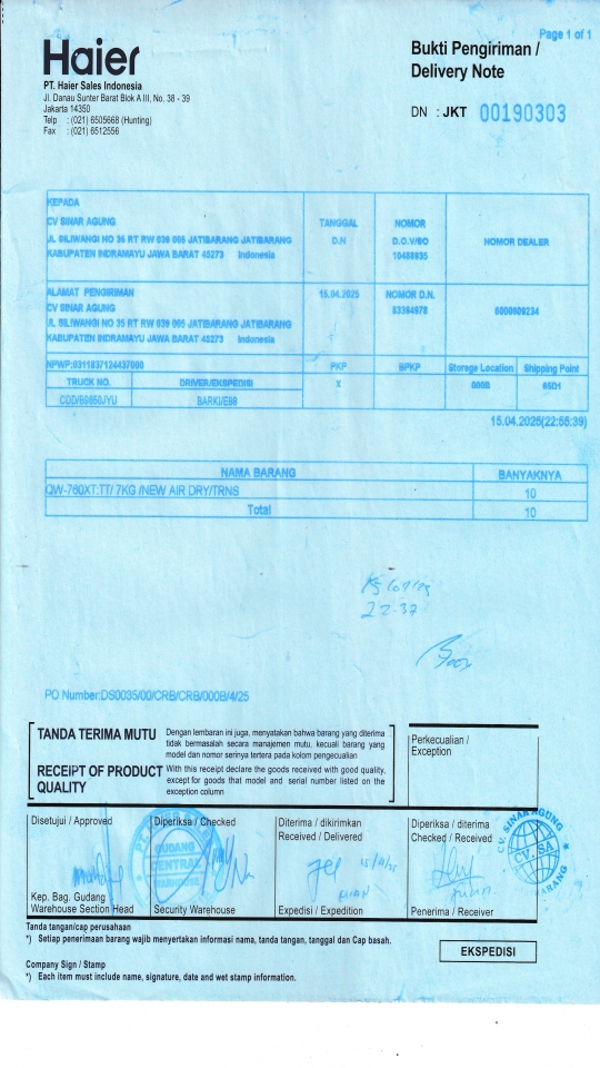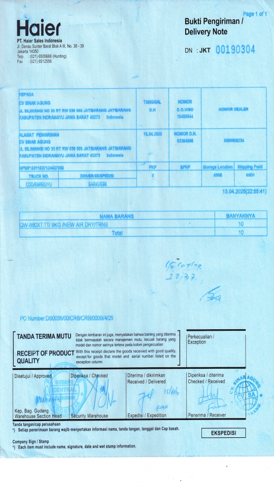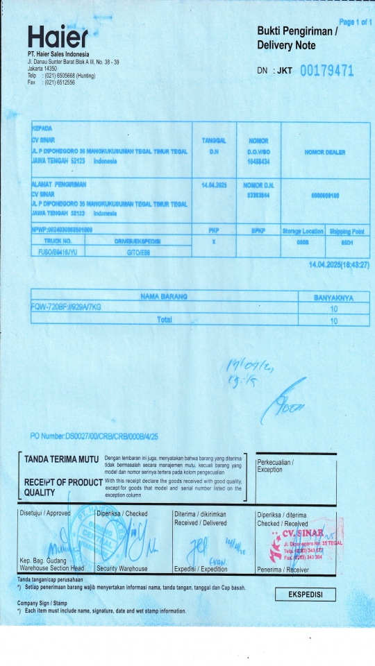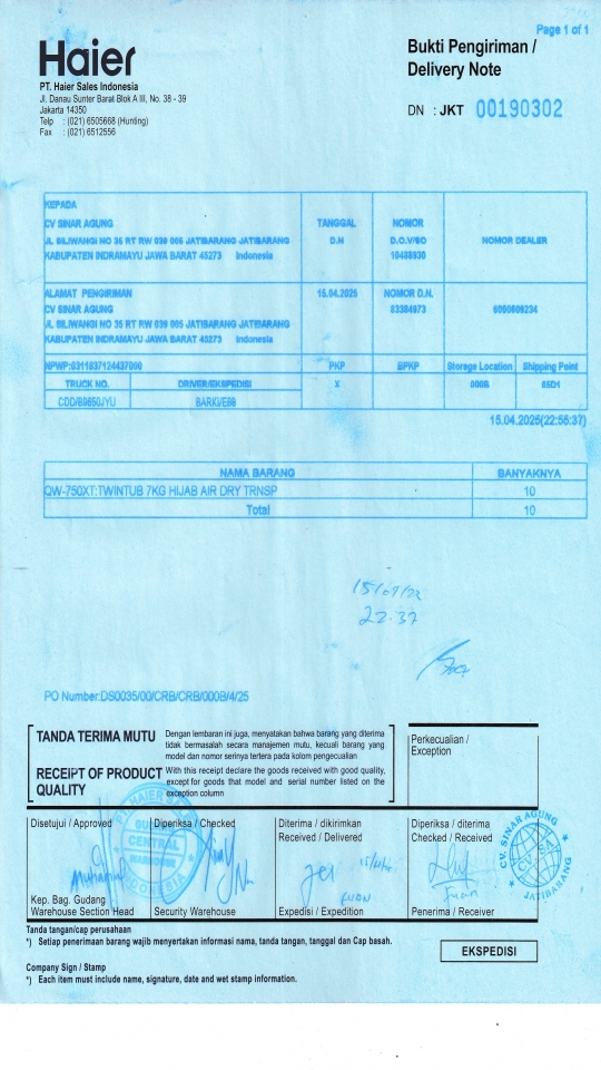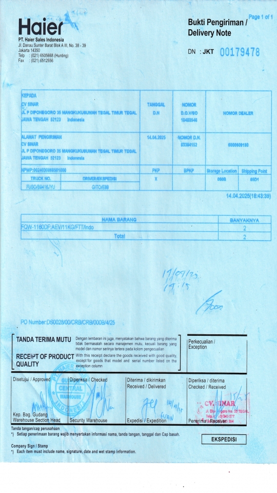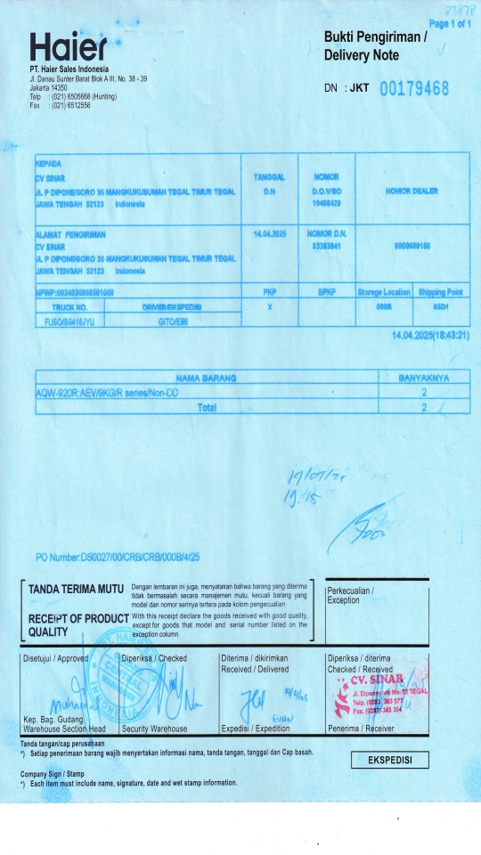 | Penerima | NURHAYATI - HAIER CIREBON |