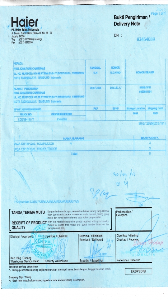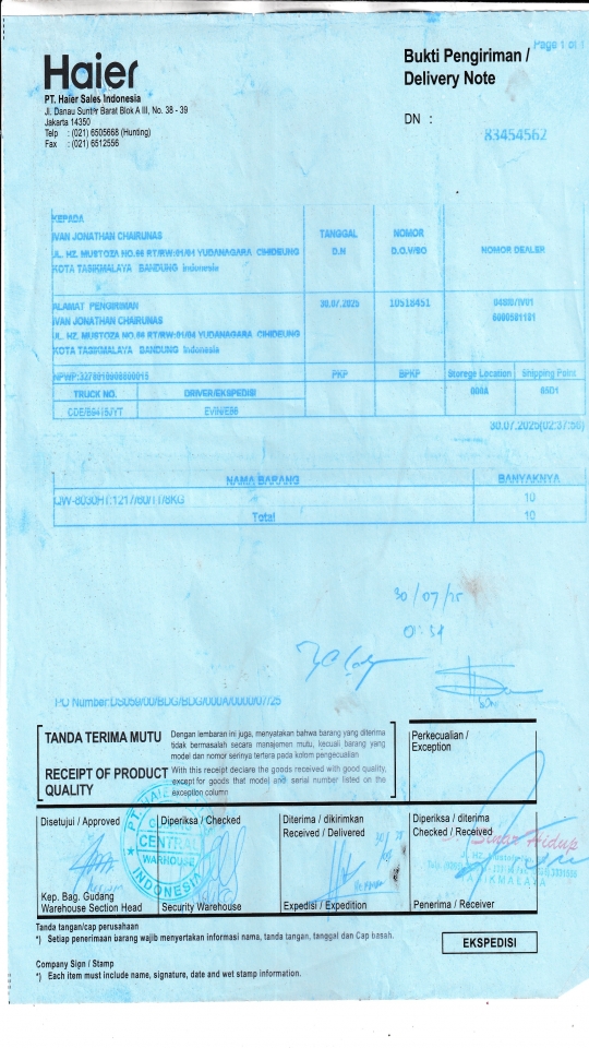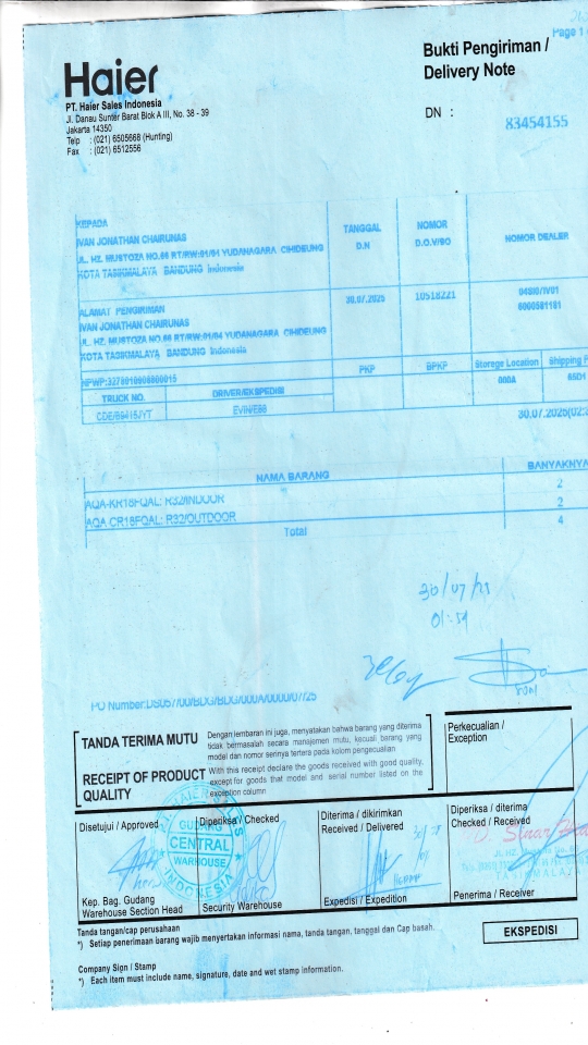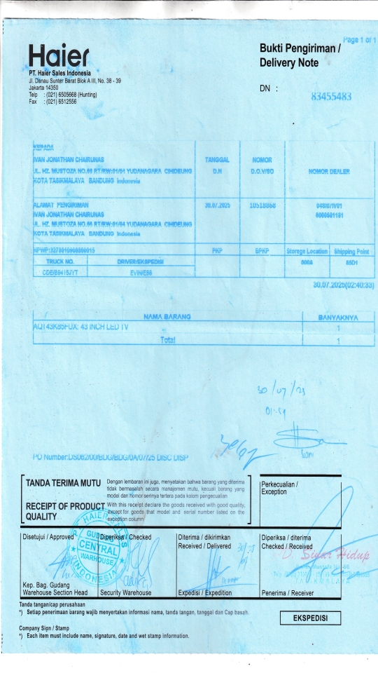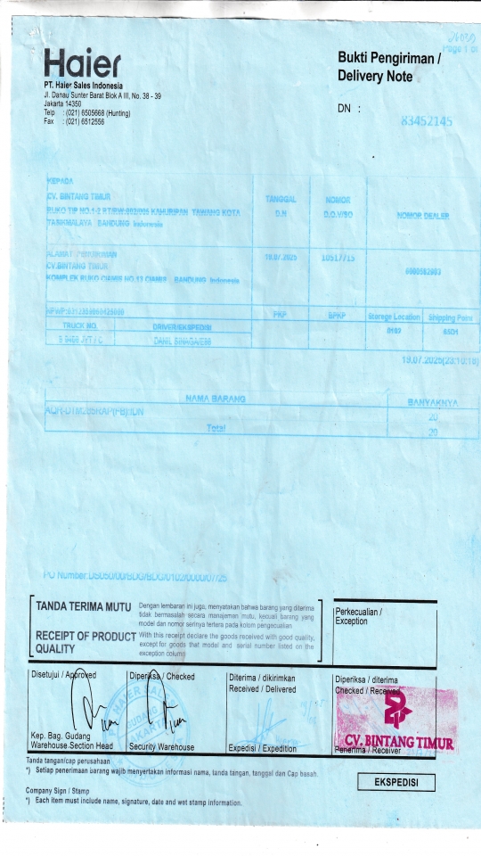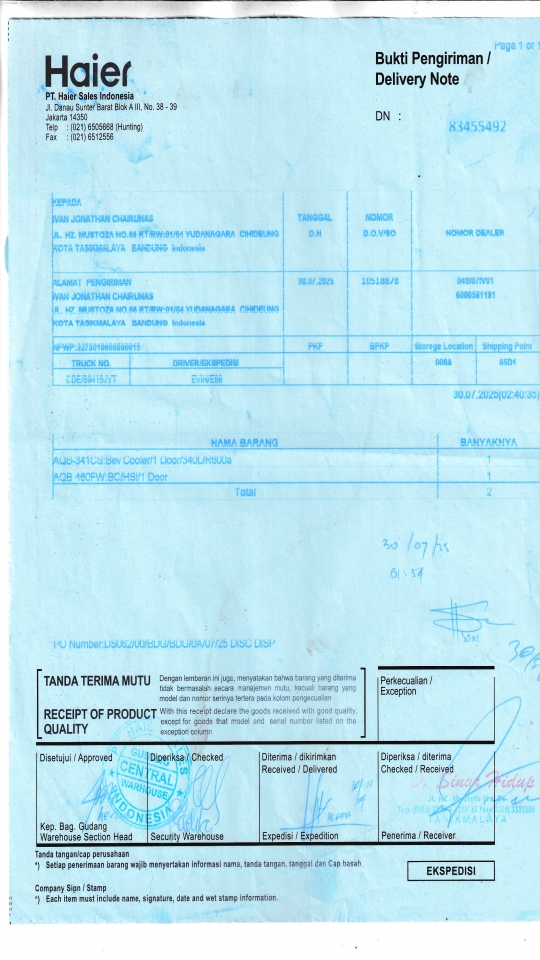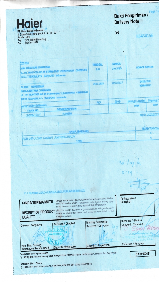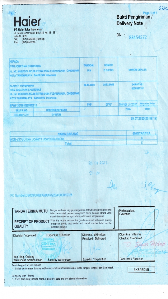 | Penerima | LUSY AMANDA - HAIER BANDUNG |