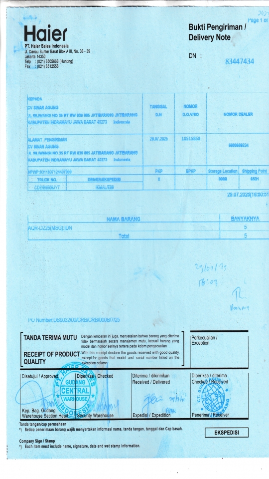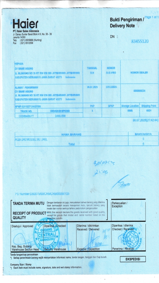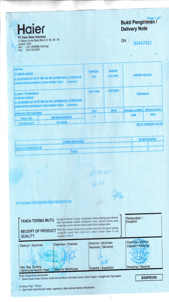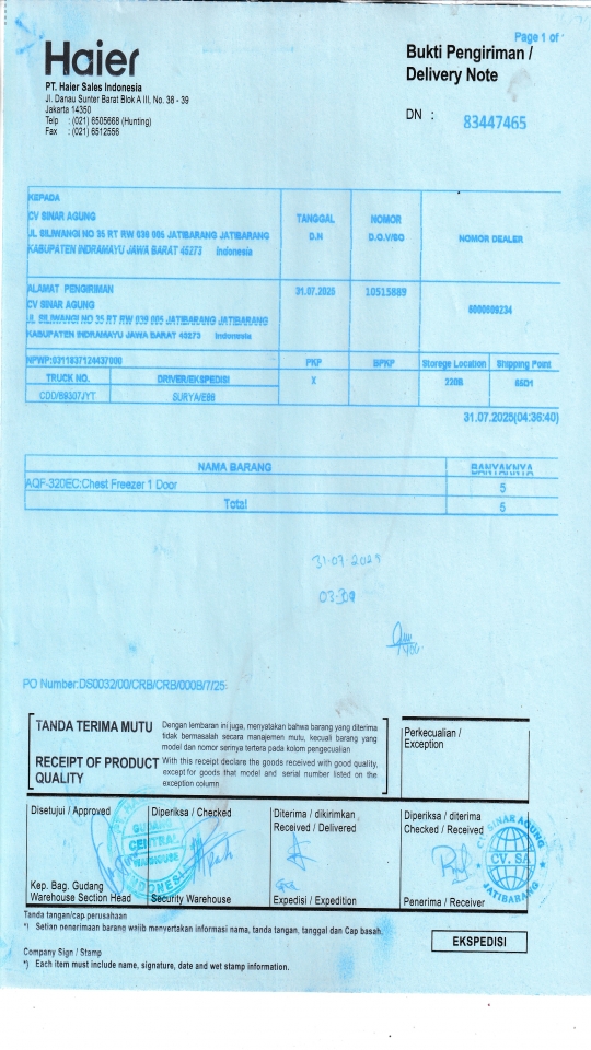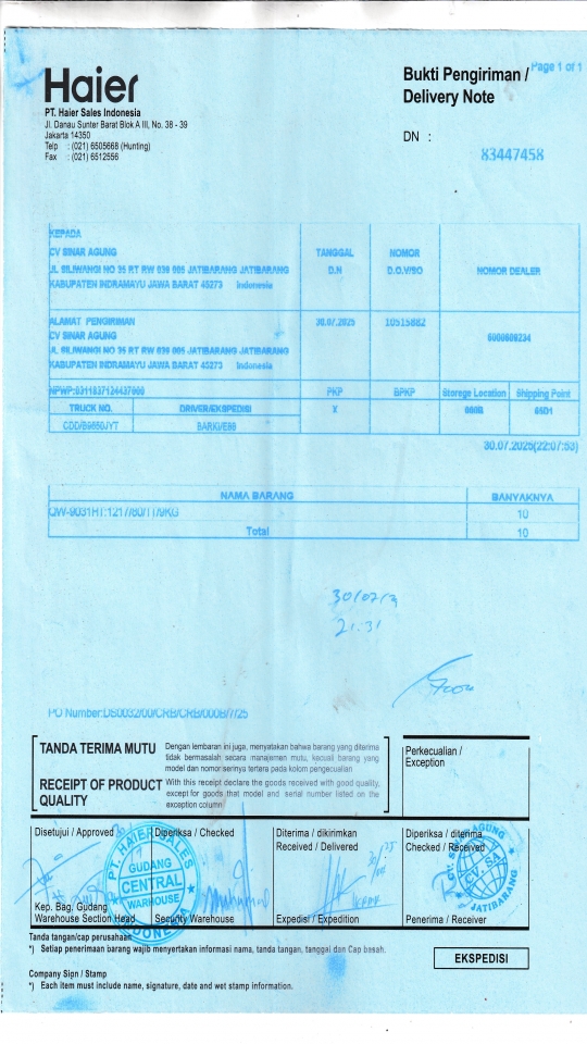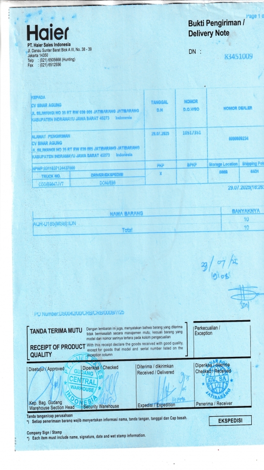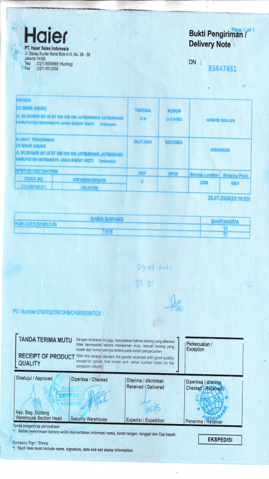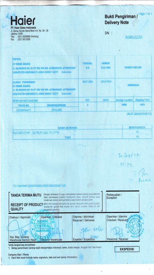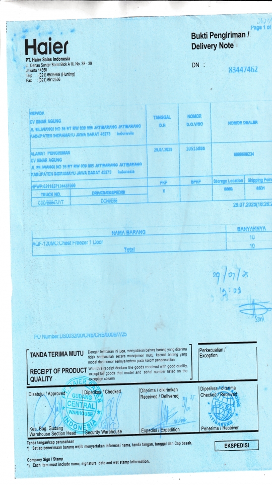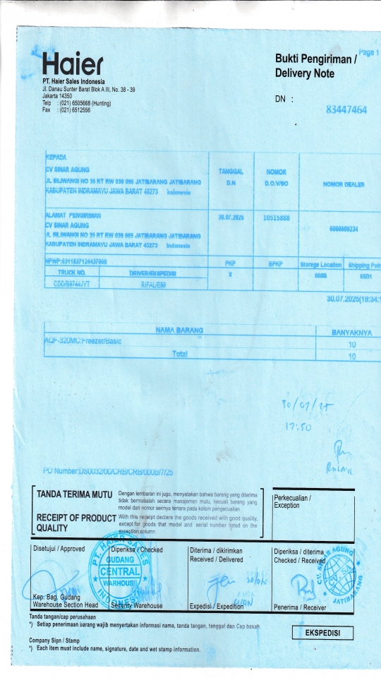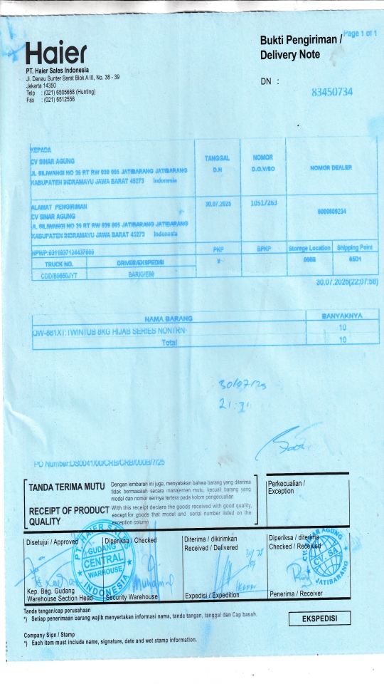 | Penerima | NURHAYATI - HAIER CIREBON |