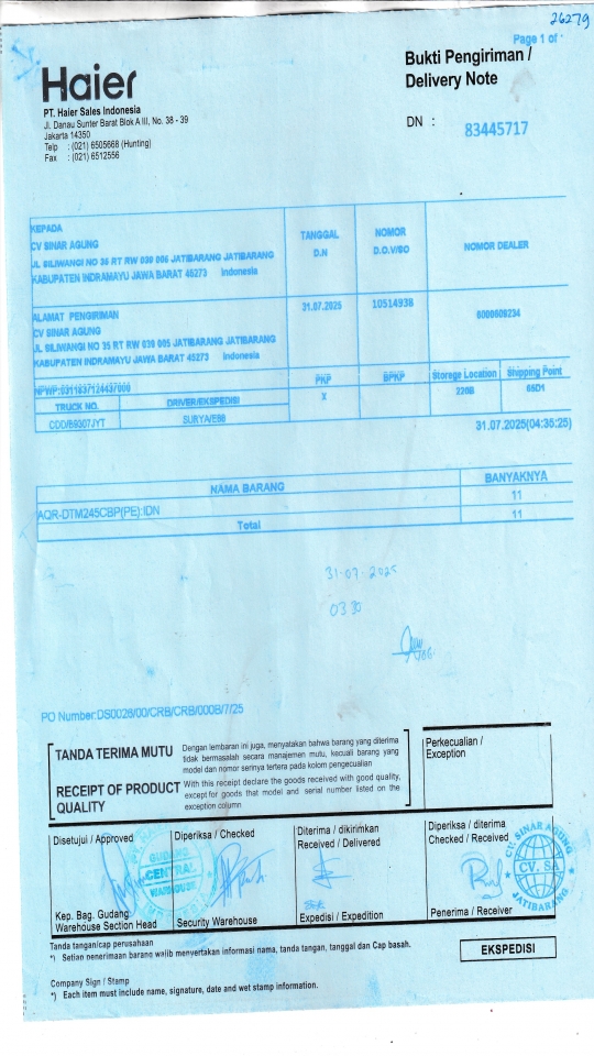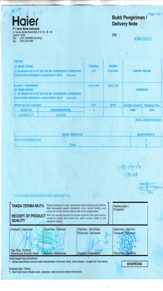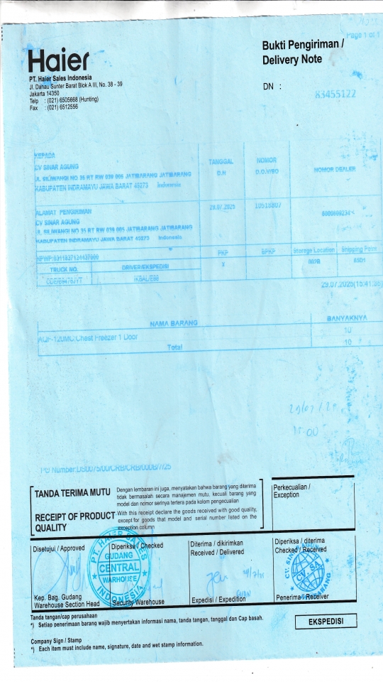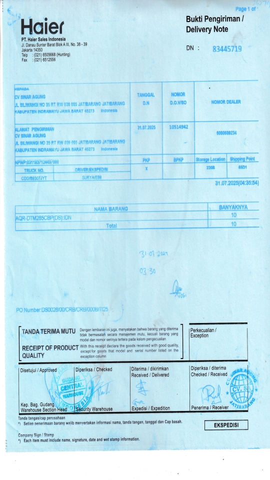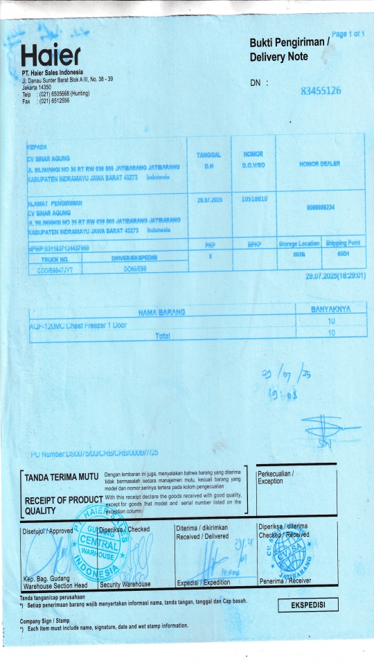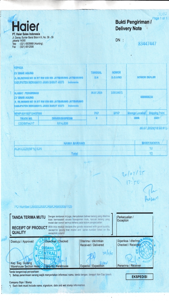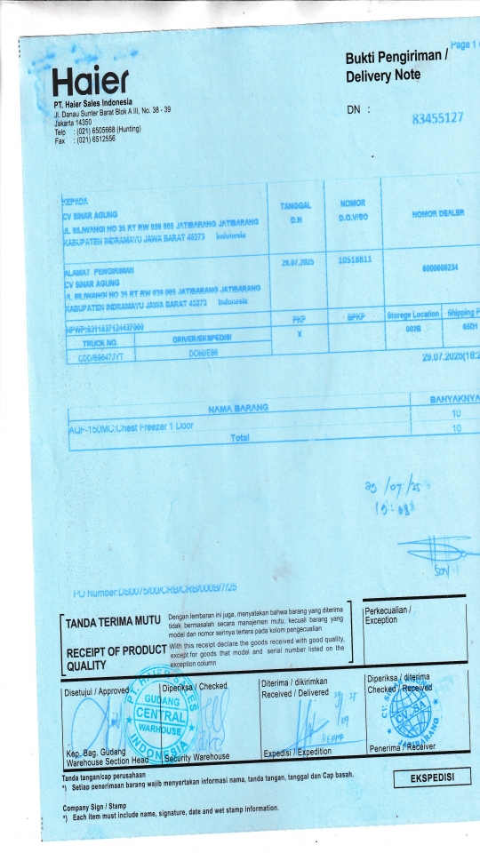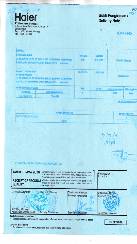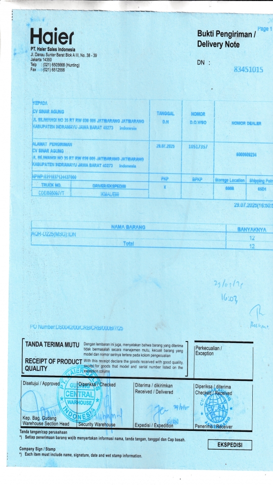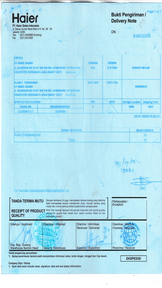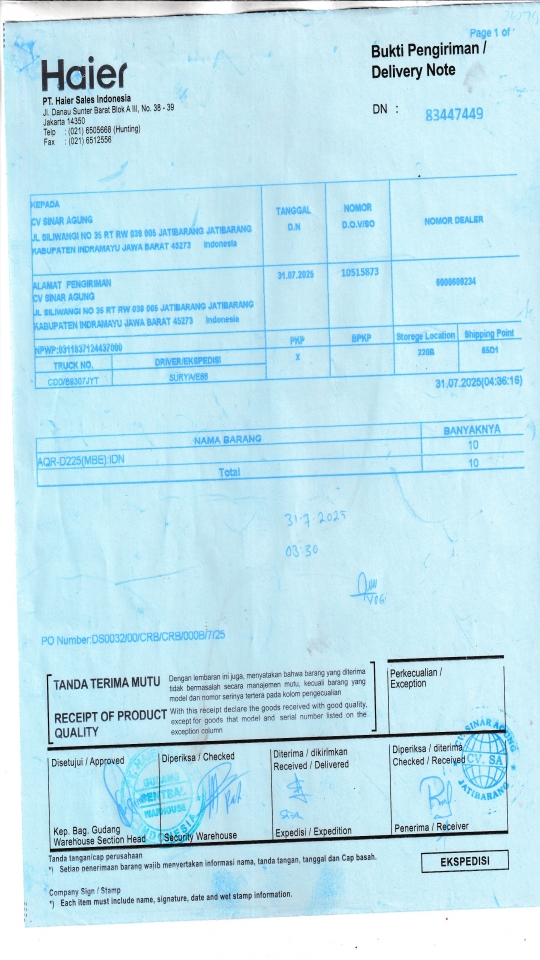 | Penerima | NURHAYATI - HAIER CIREBON |