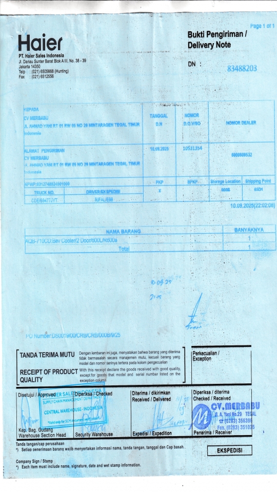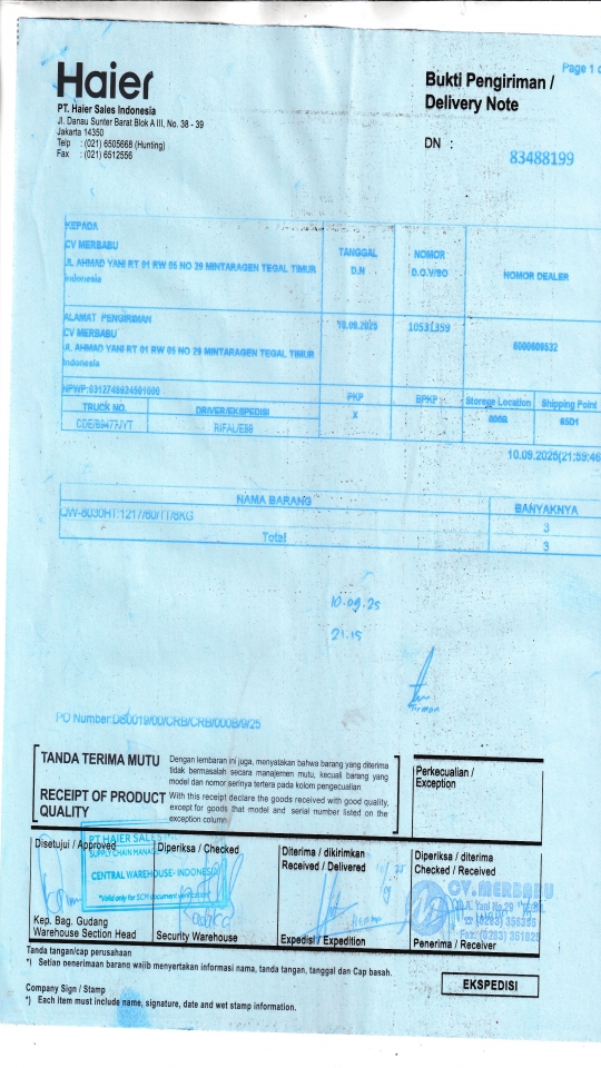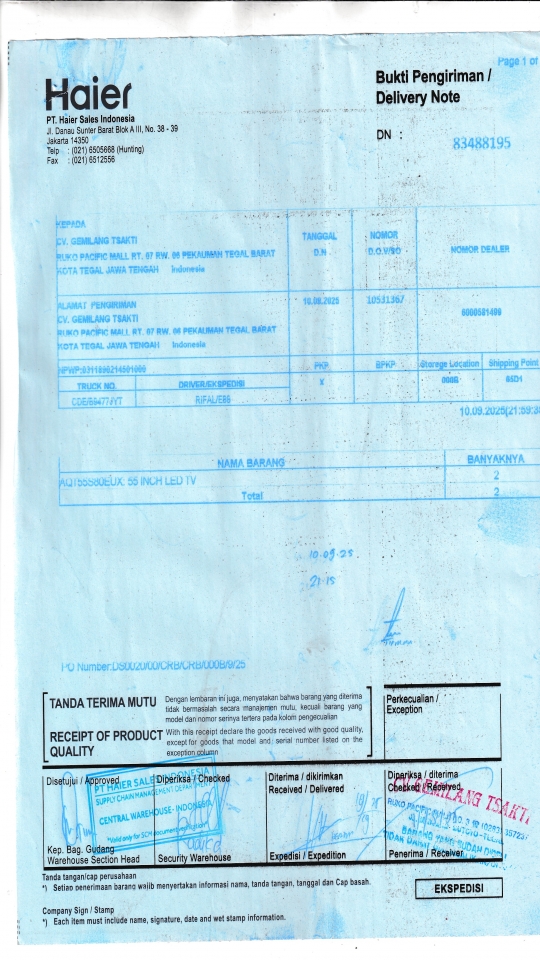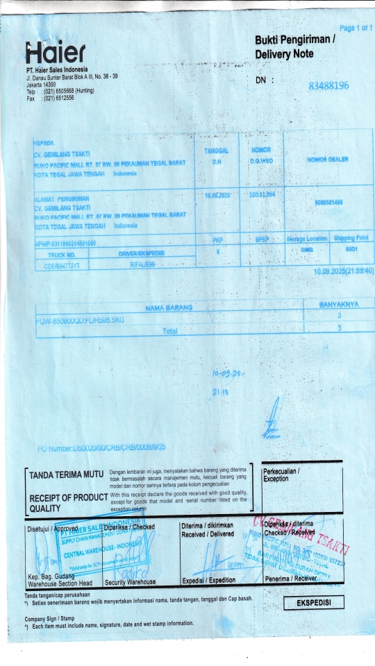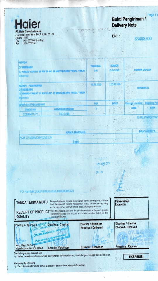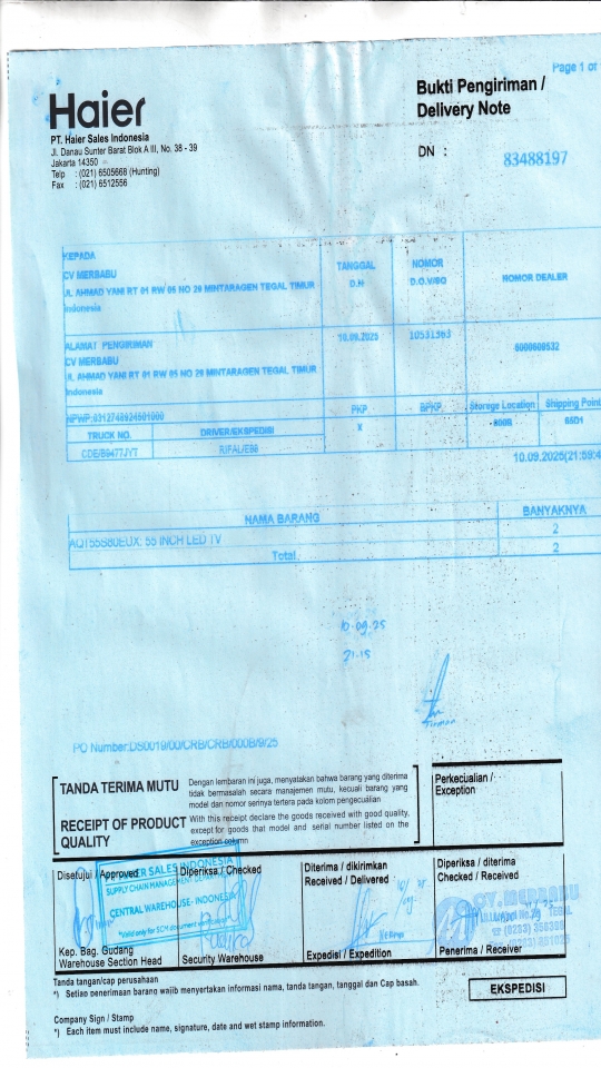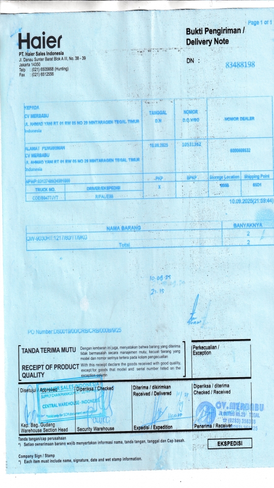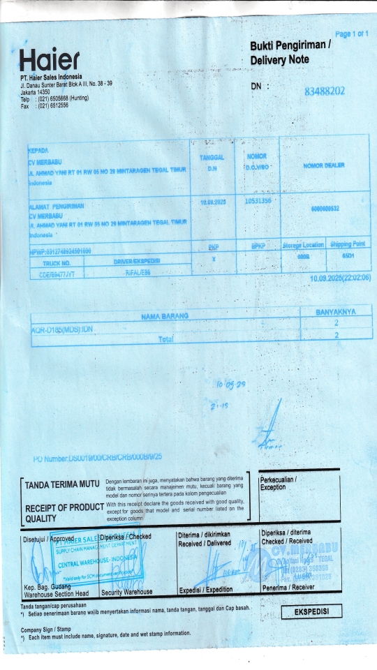 | Penerima | NURHAYATI - HAIER CIREBON |