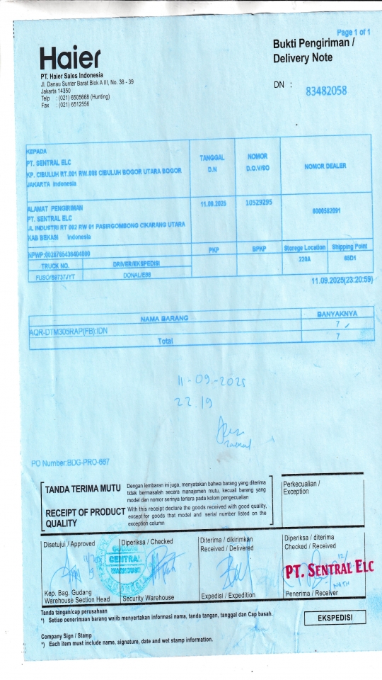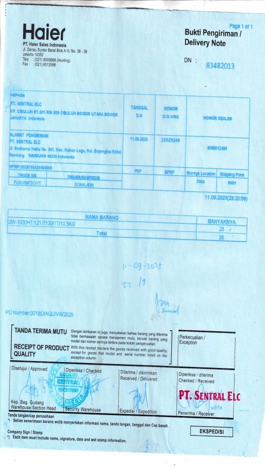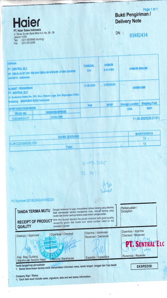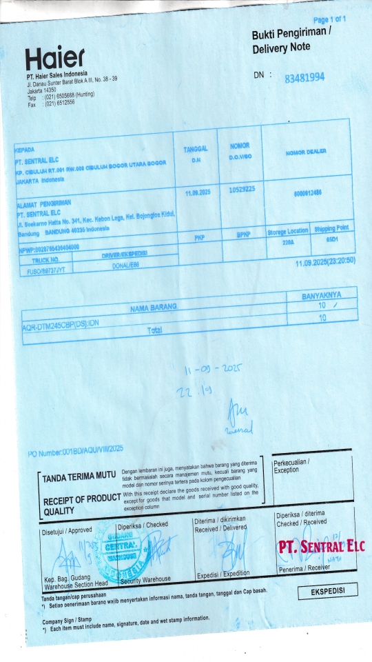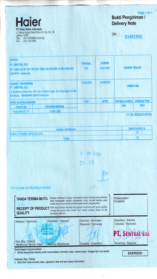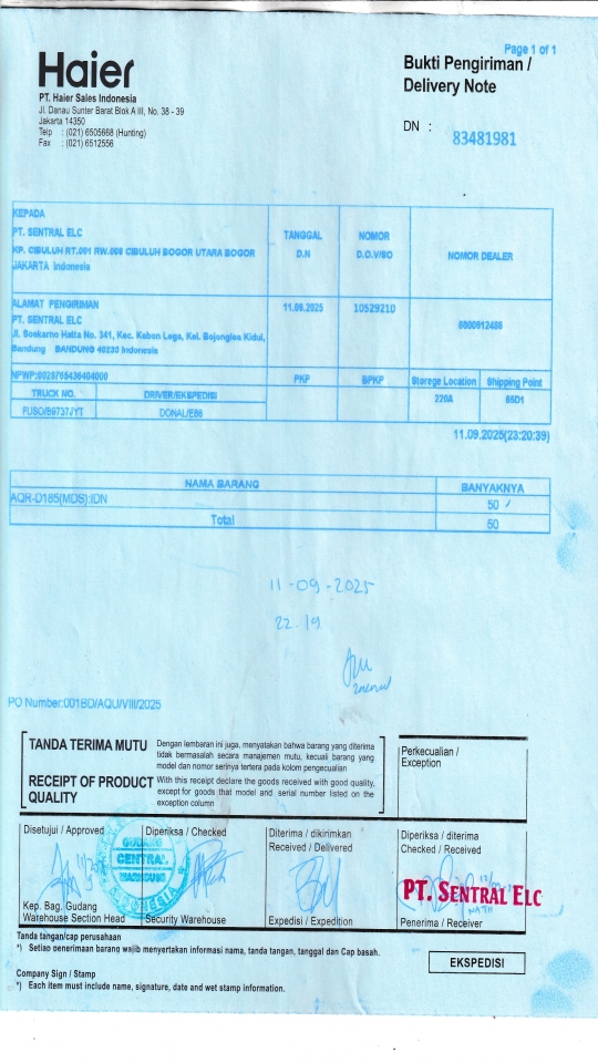 | Penerima | LUSY AMANDA - HAIER BANDUNG |