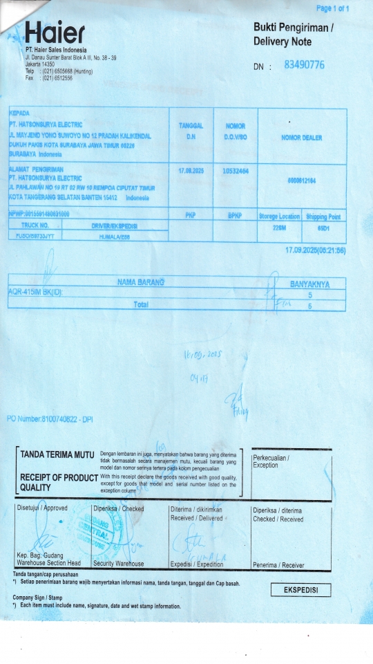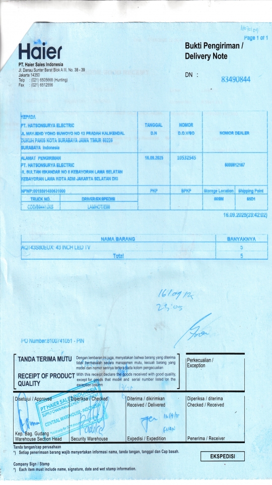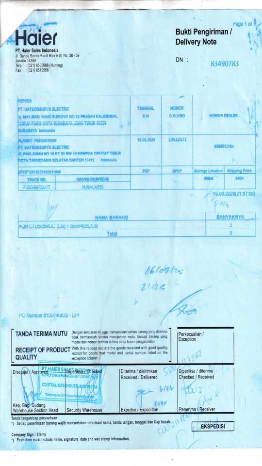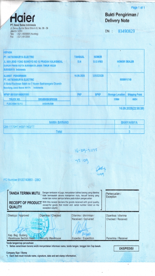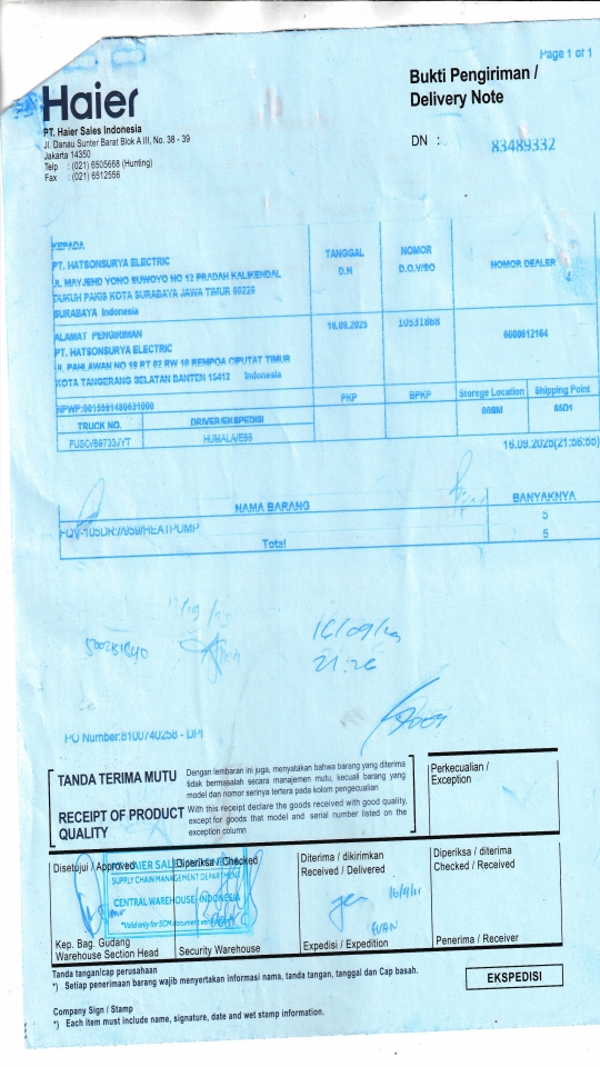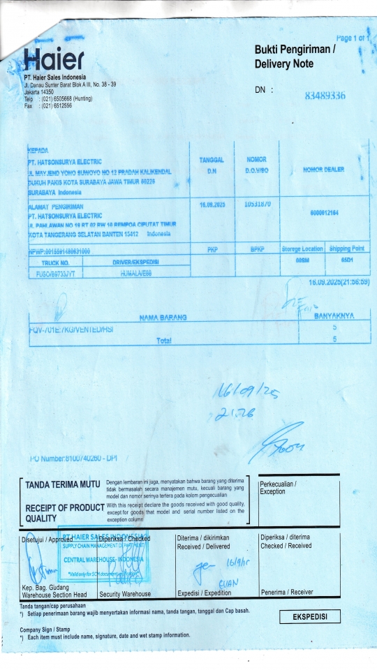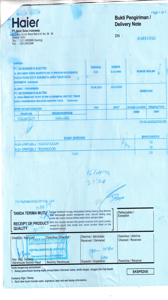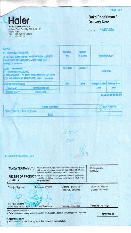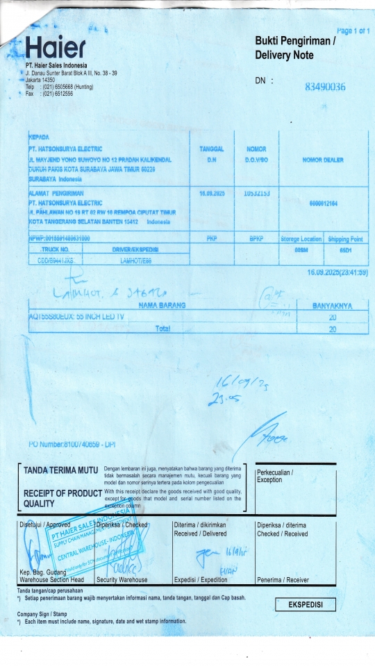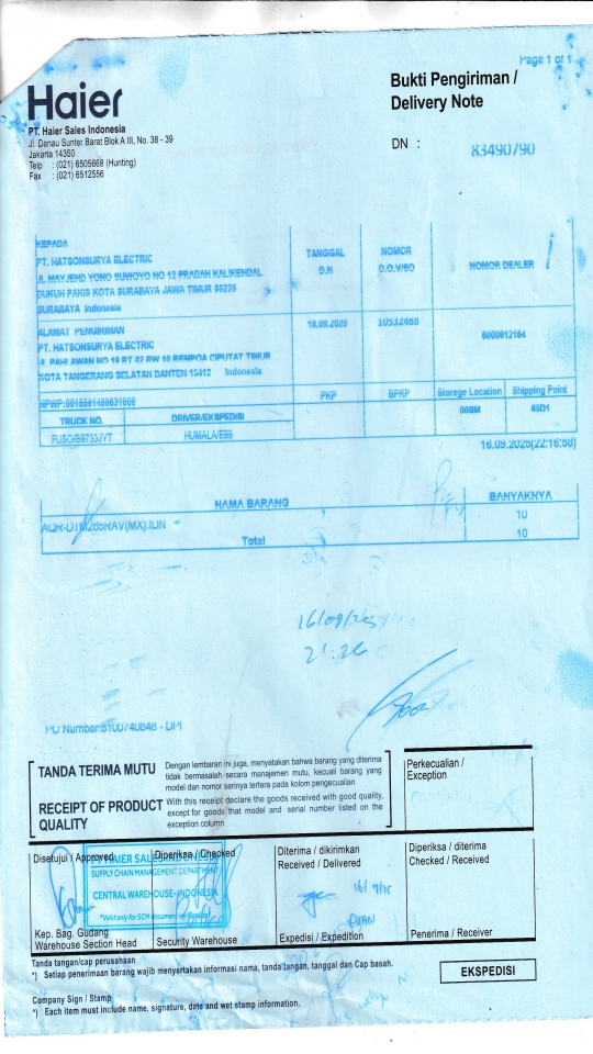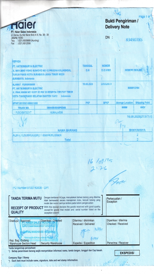 | Penerima | RENY WIDYA - HAIER SURABAYA |
