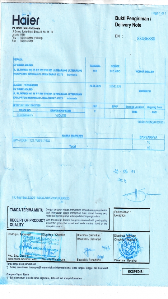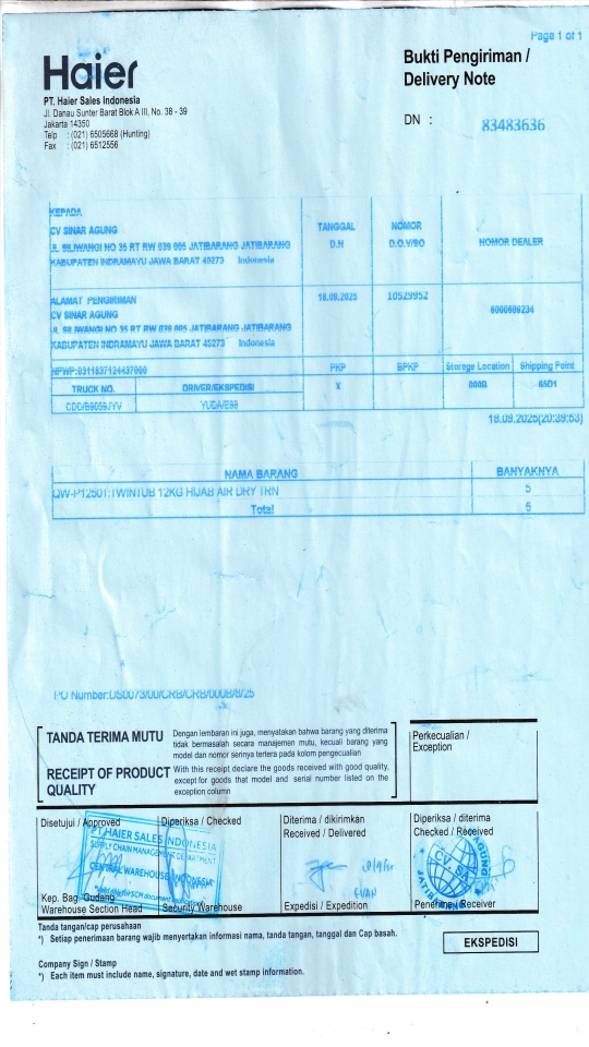 | Penerima | NURHAYATI - HAIER CIREBON |