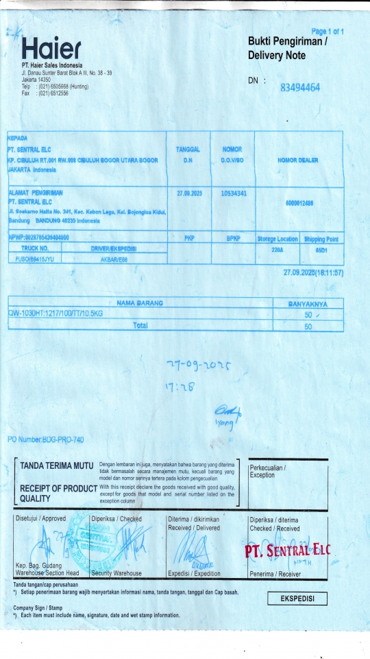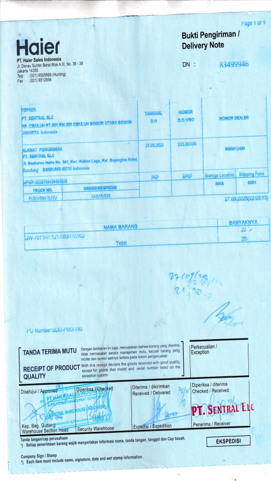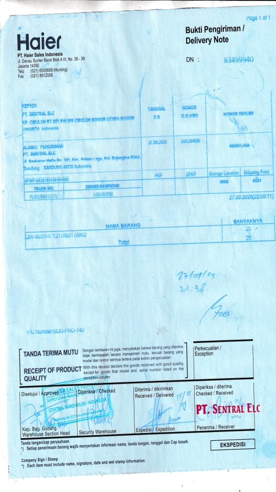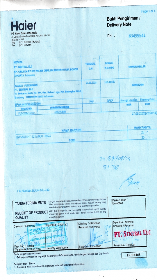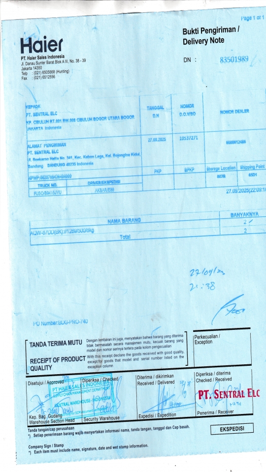| Penerima | LUSY AMANDA - HAIER BANDUNG |