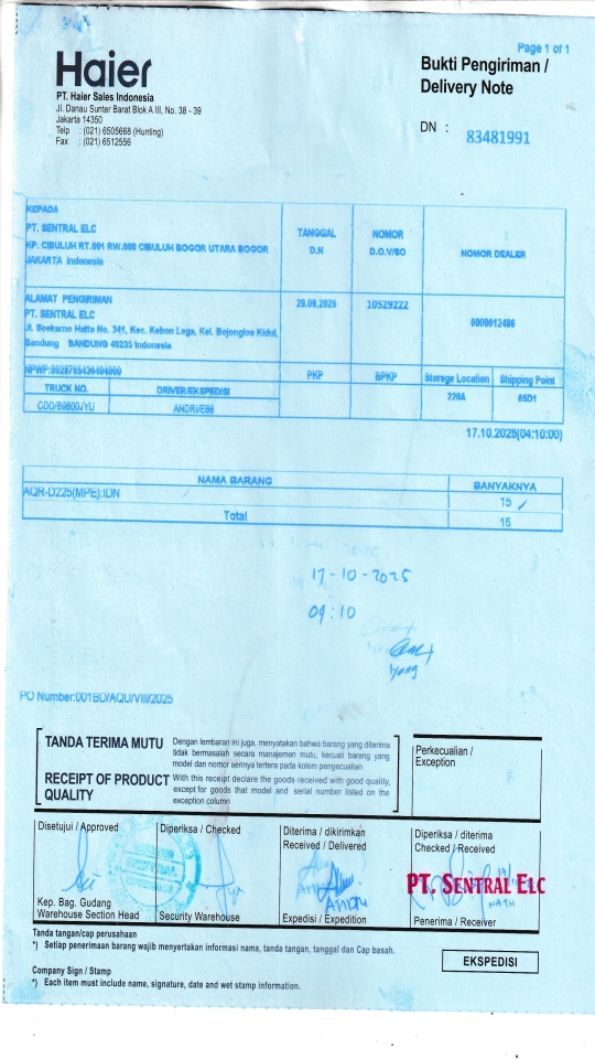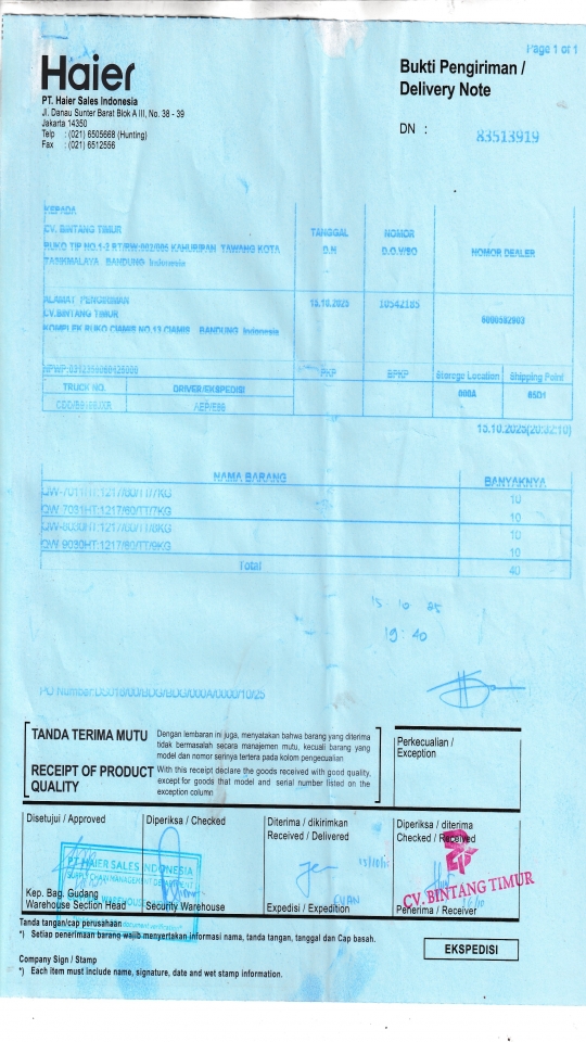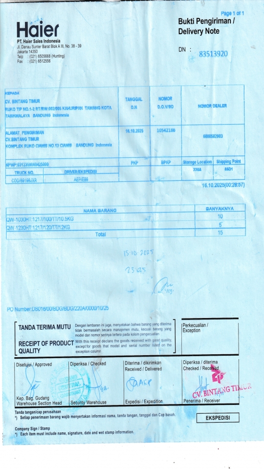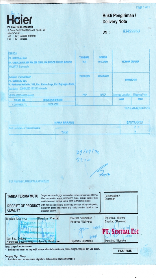 | Penerima | LUSY AMANDA - HAIER BANDUNG |