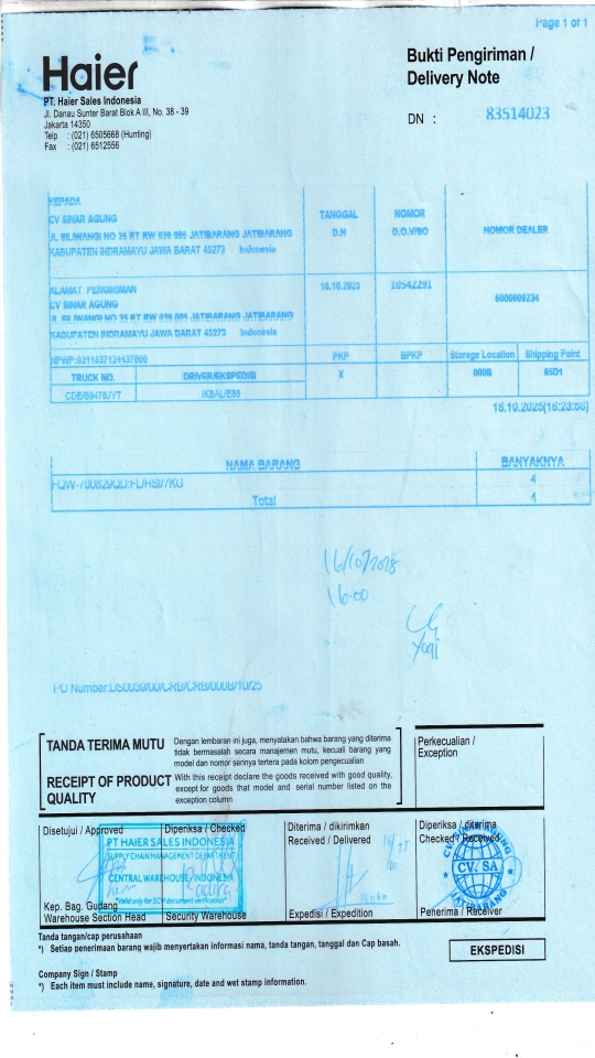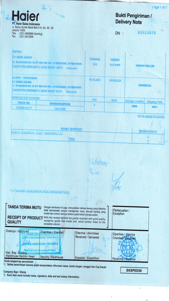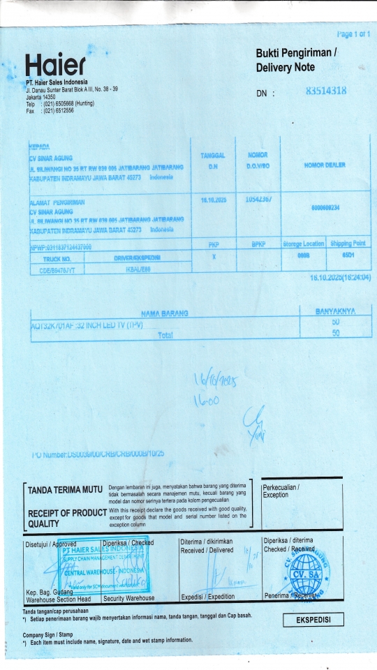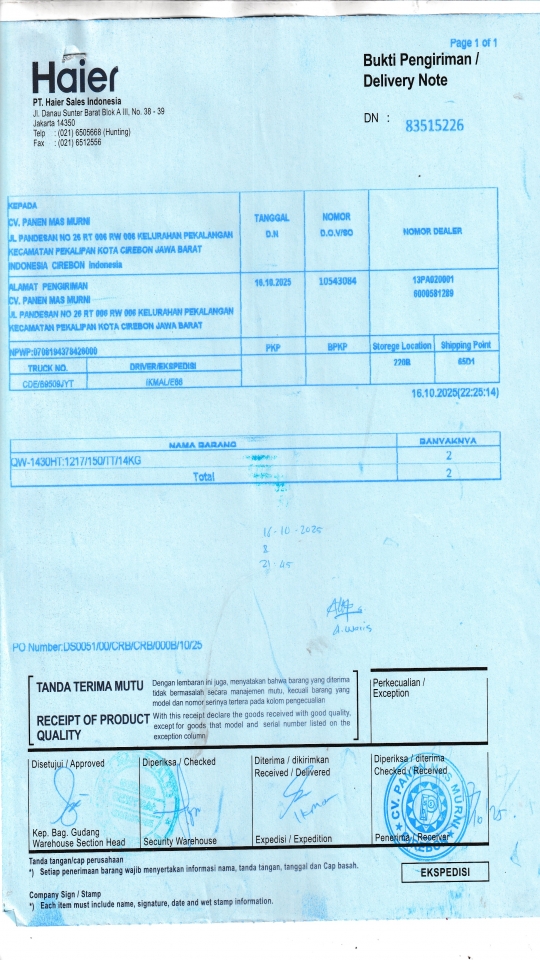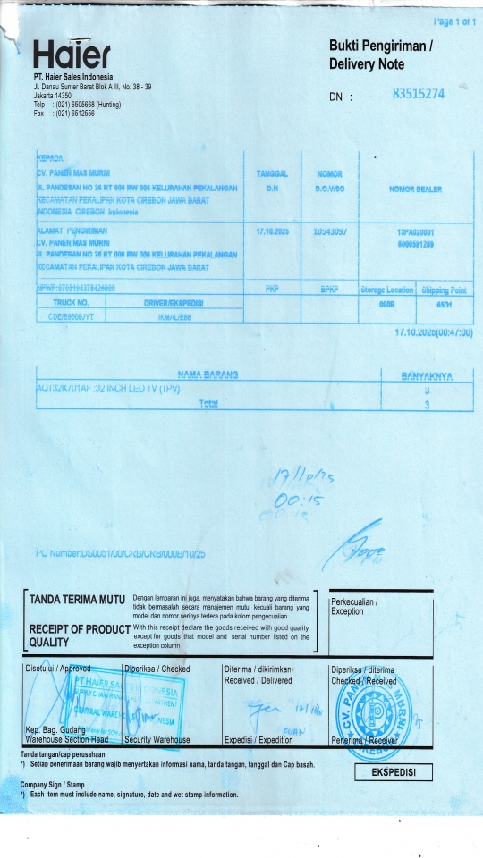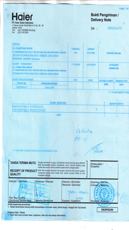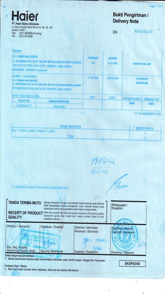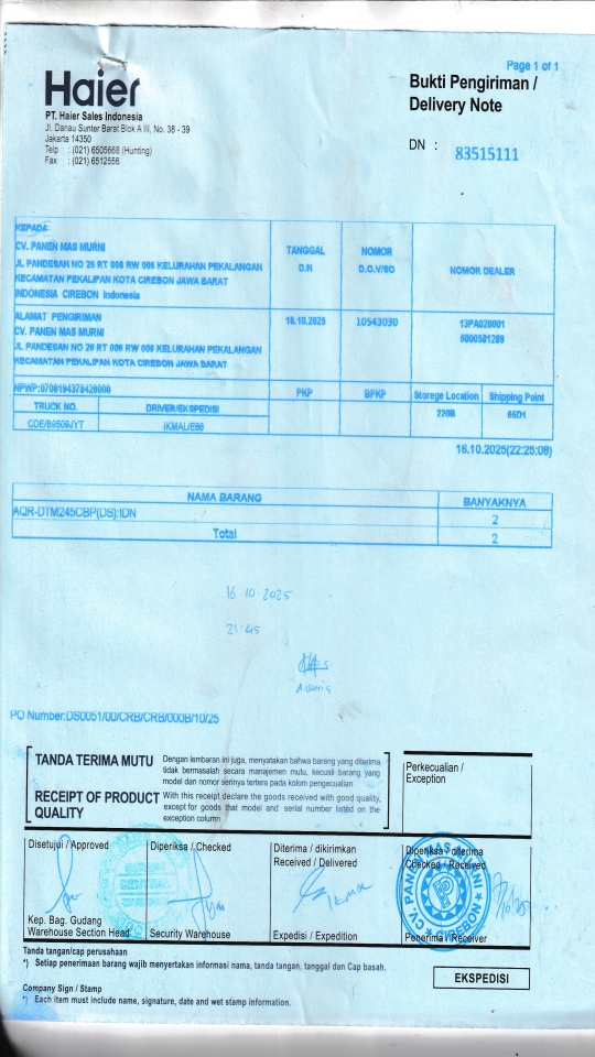 | Penerima | NURHAYATI - HAIER CIREBON |