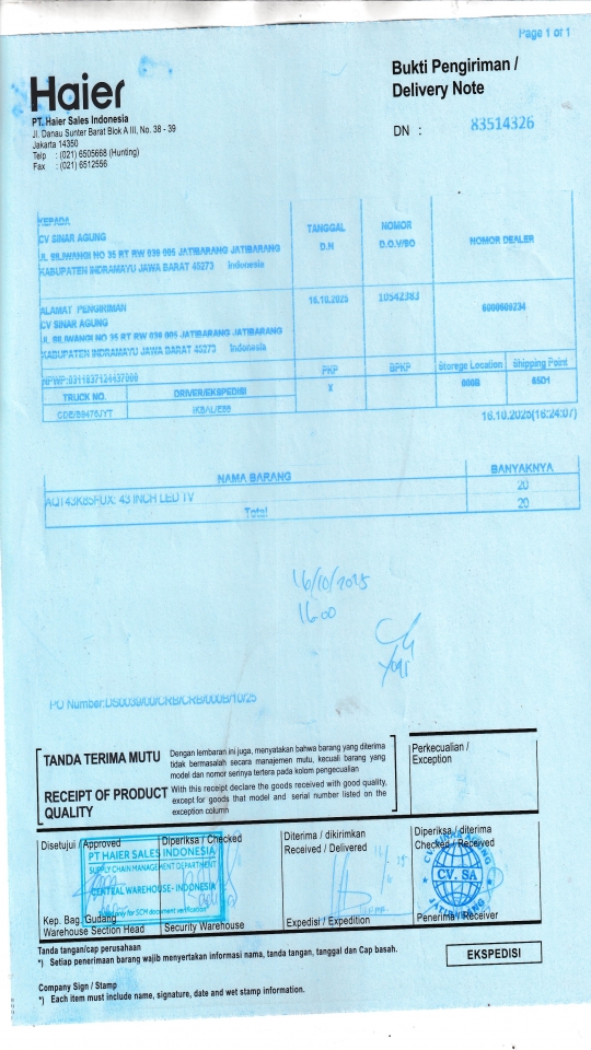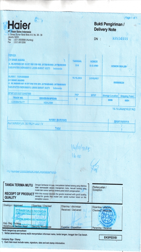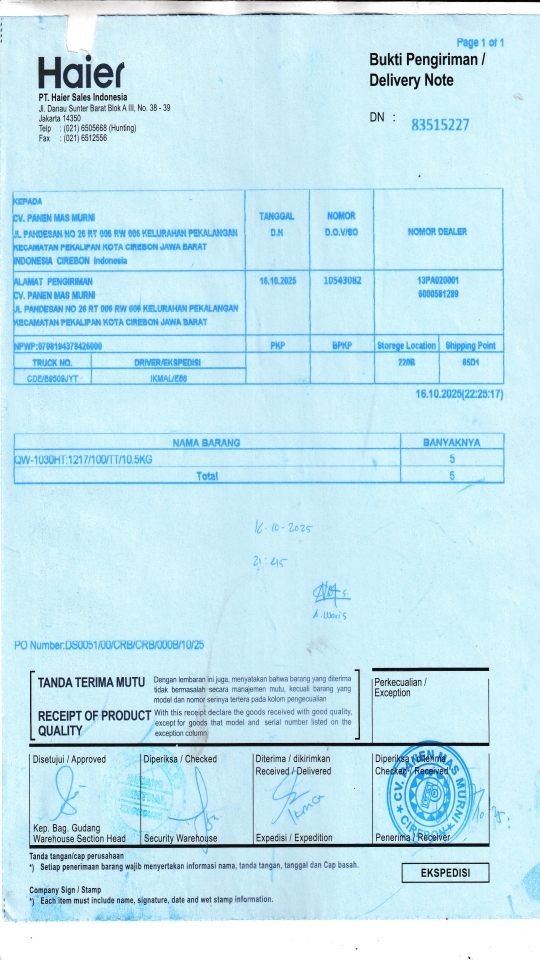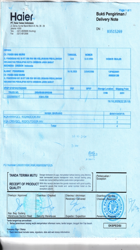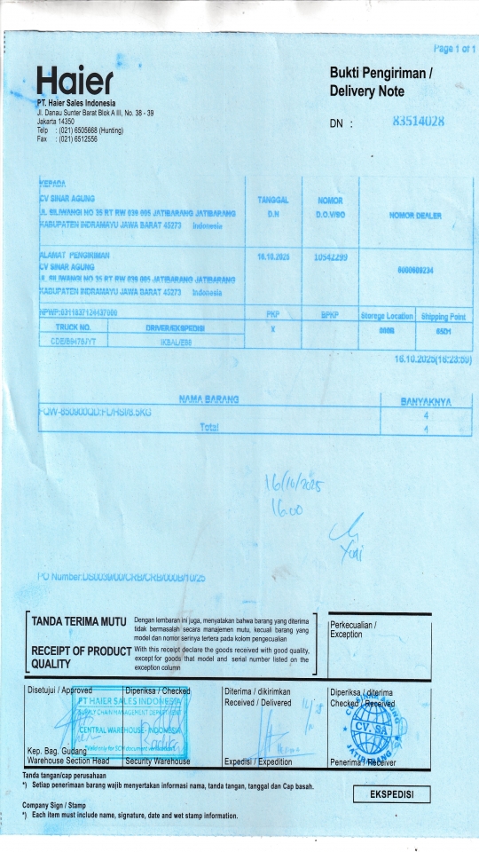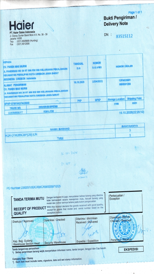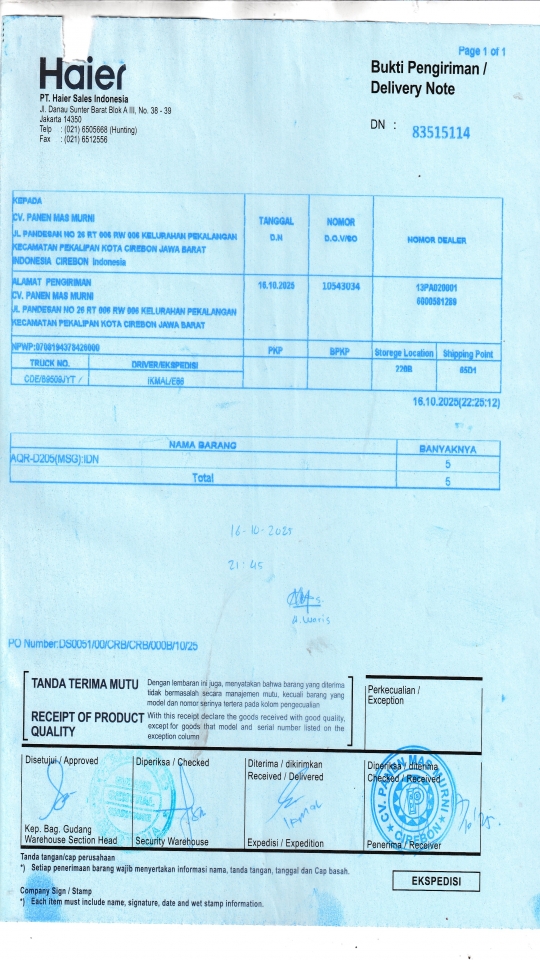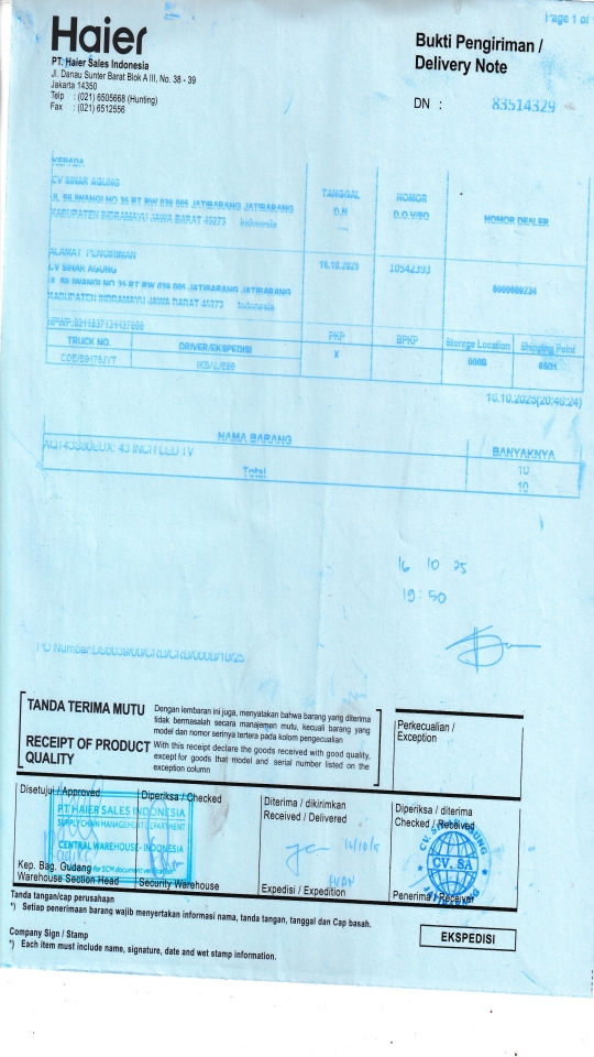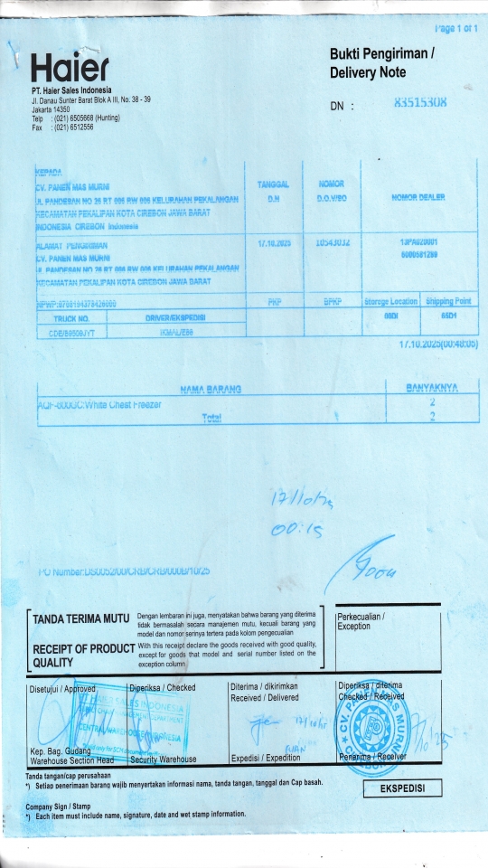 | Penerima | NURHAYATI - HAIER CIREBON |