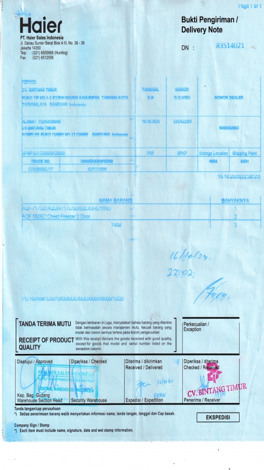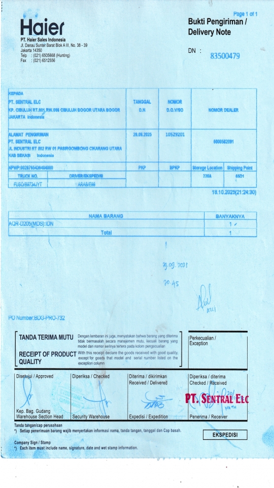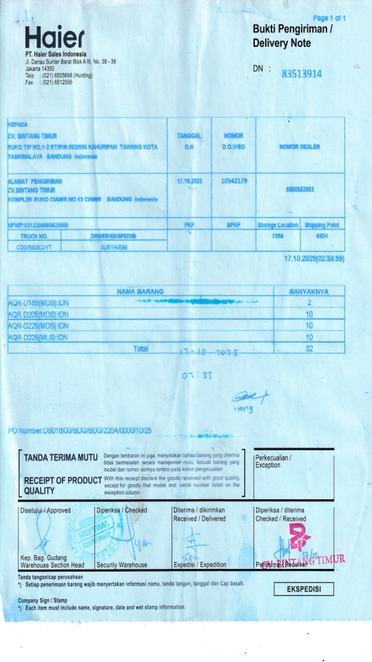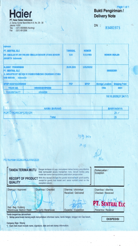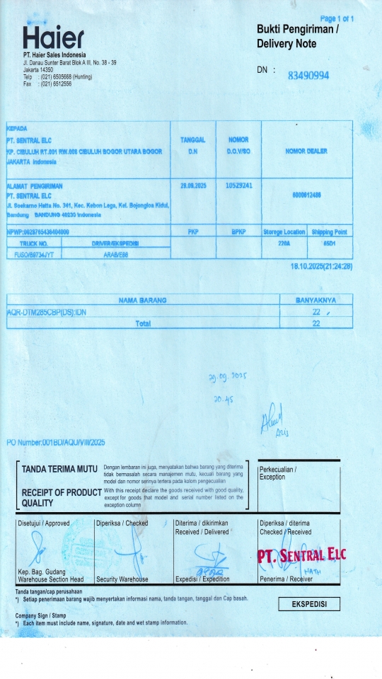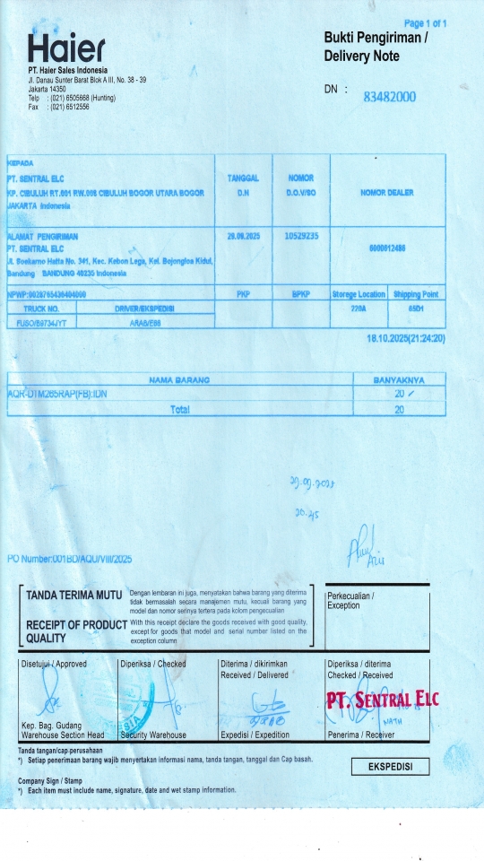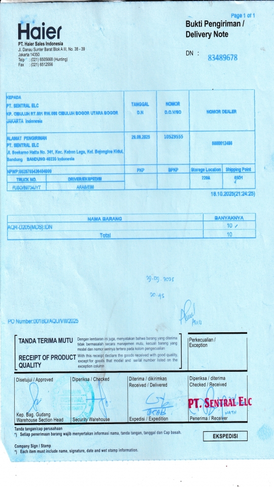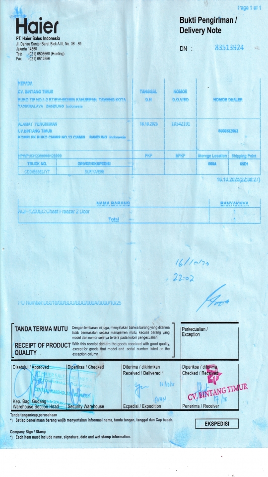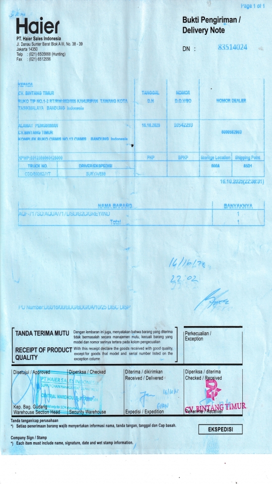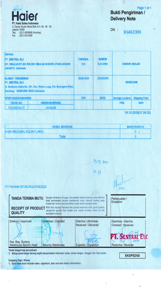 | Penerima | LUSY AMANDA - HAIER BANDUNG |