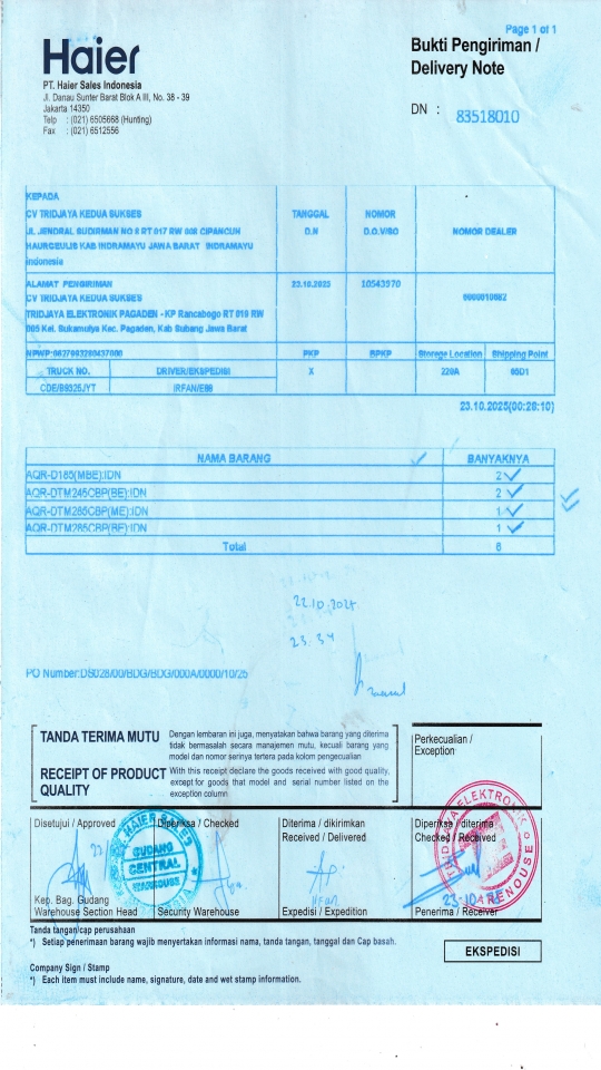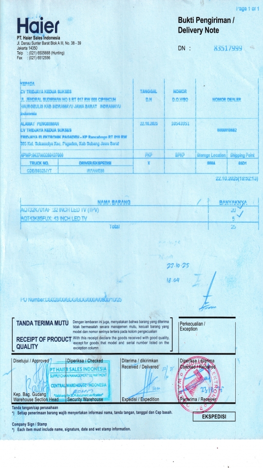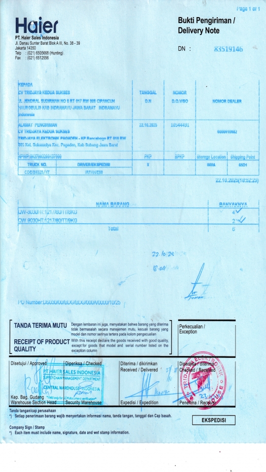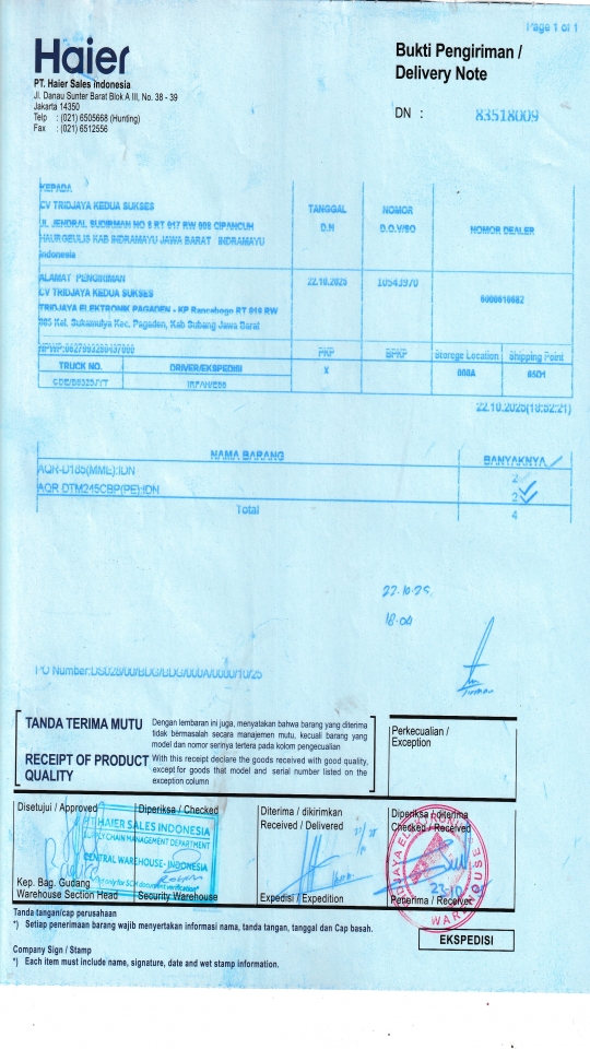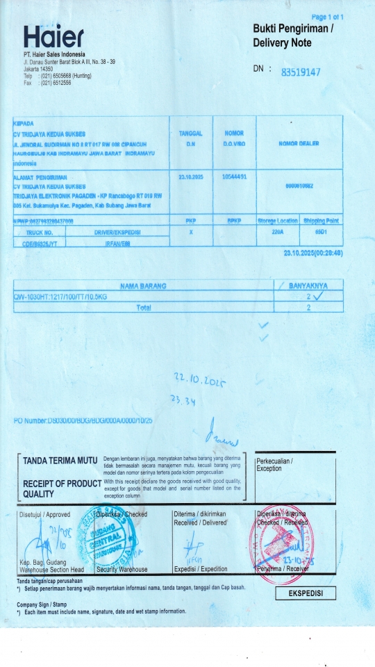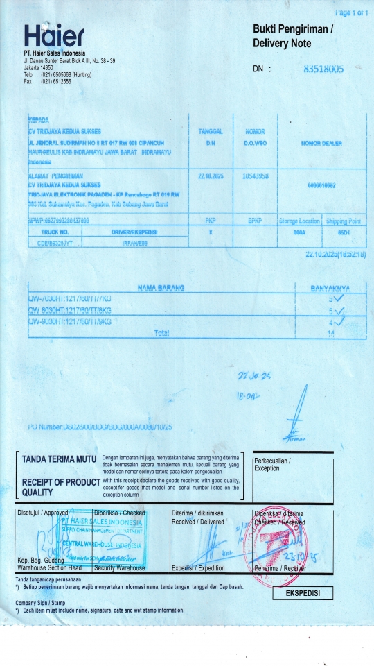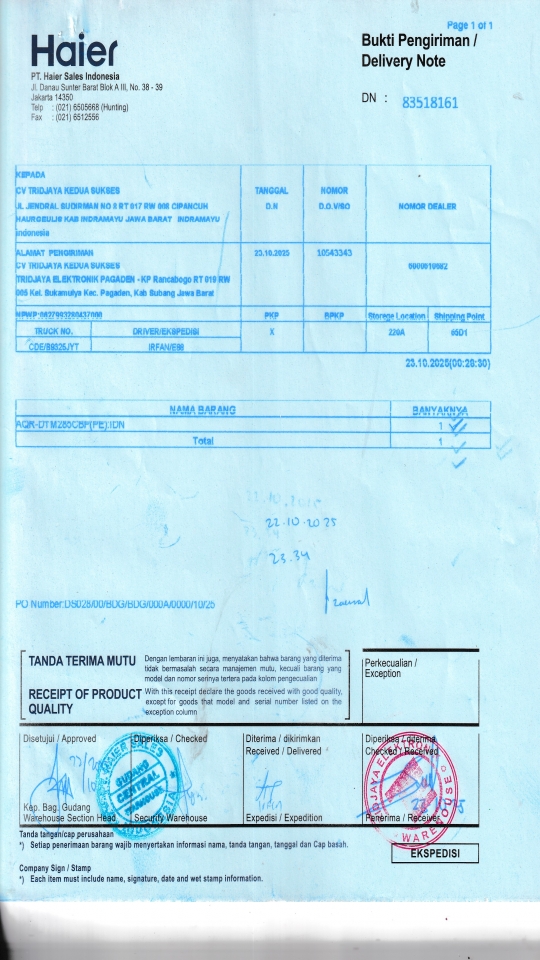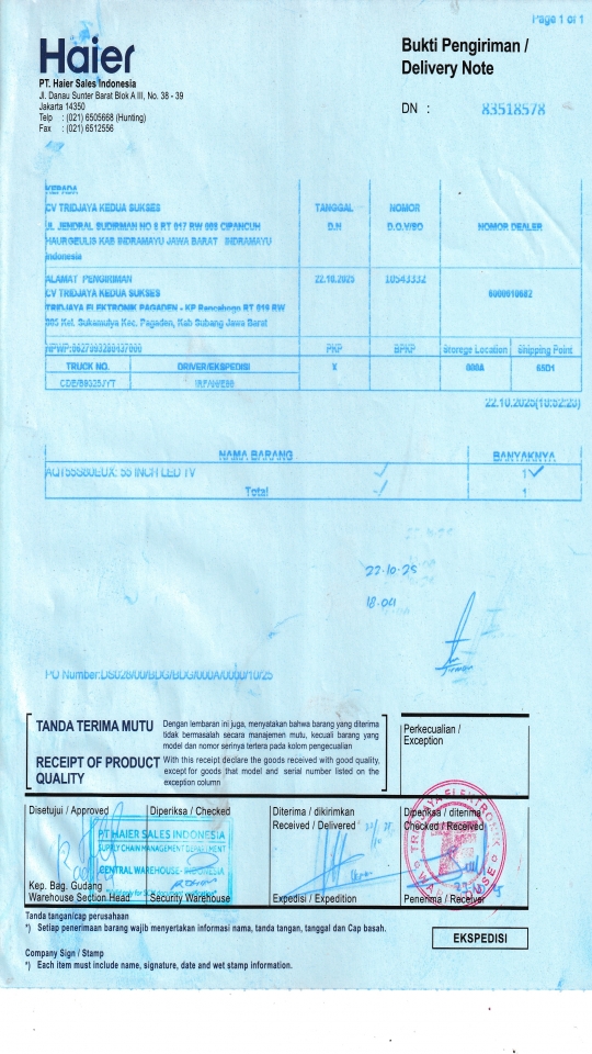 | Penerima | LUSY AMANDA - HAIER BANDUNG |