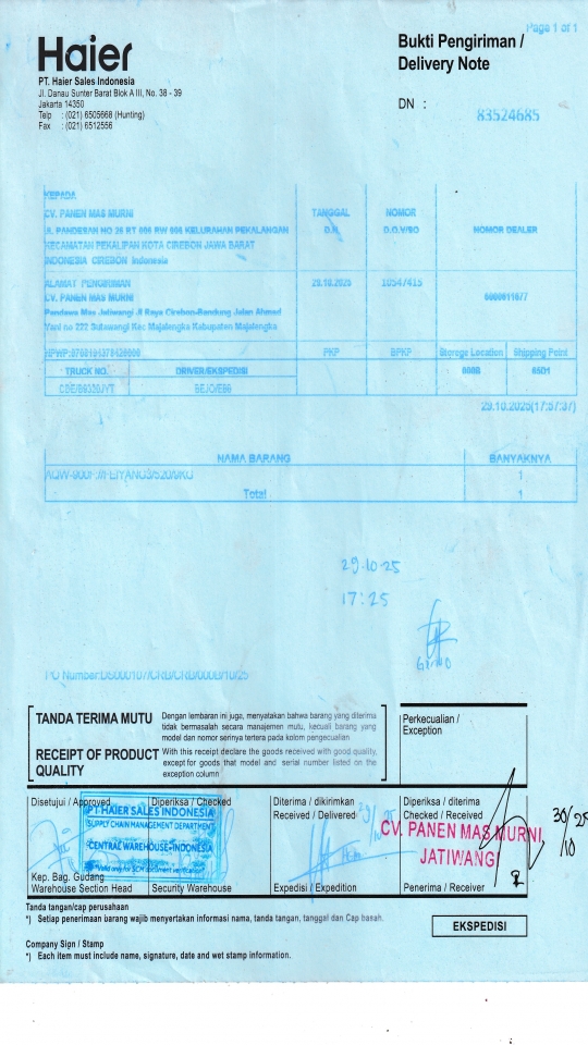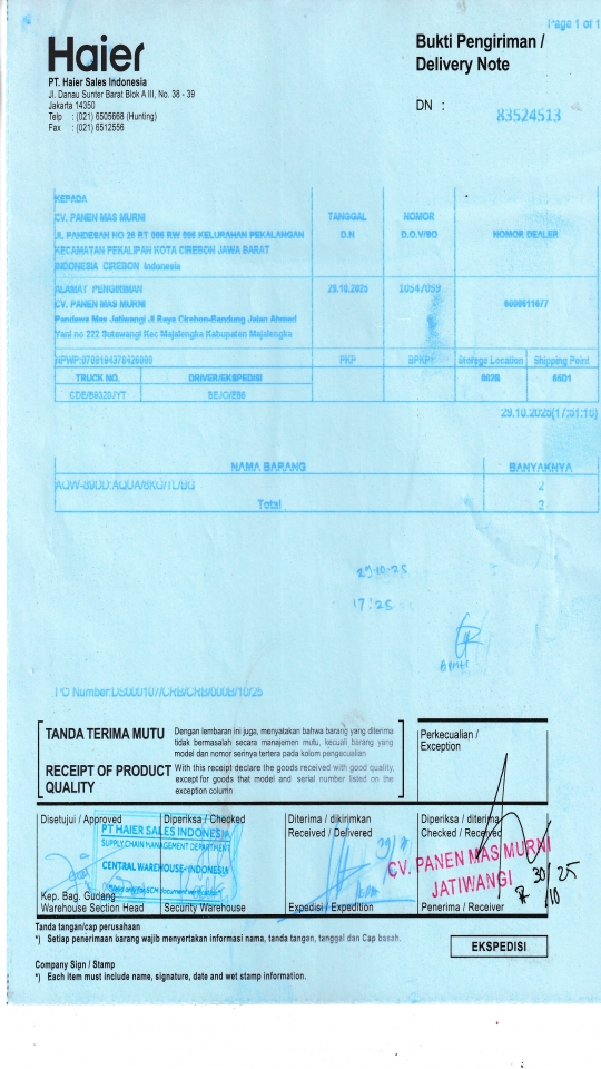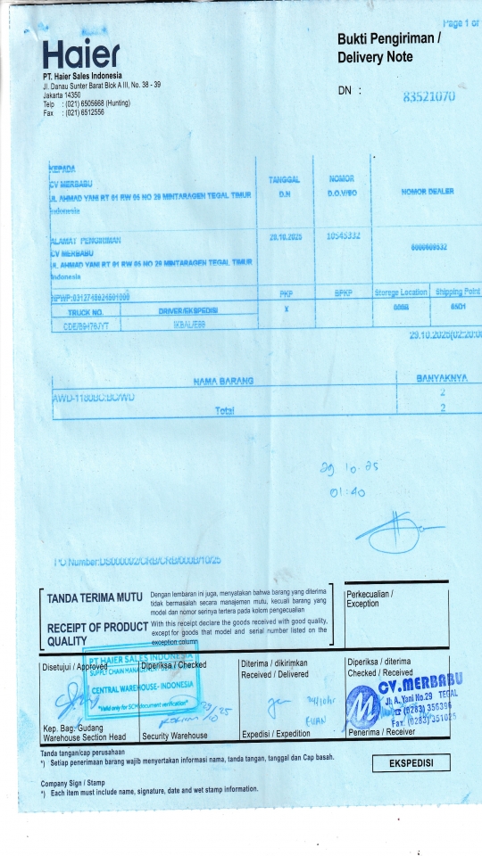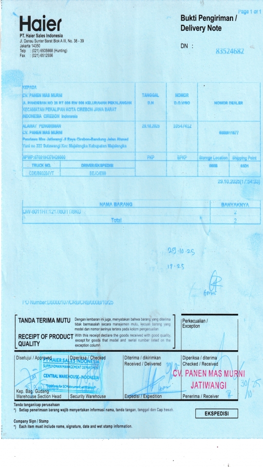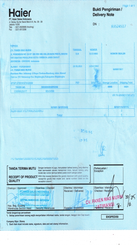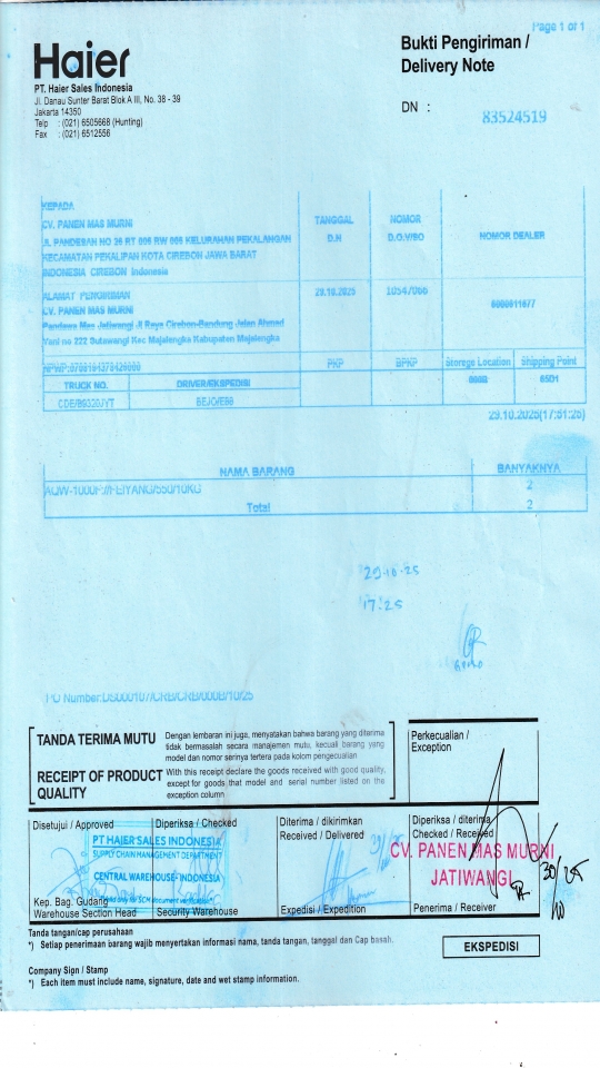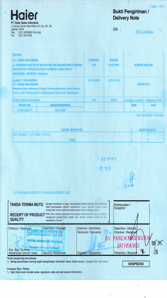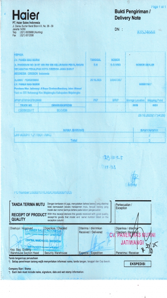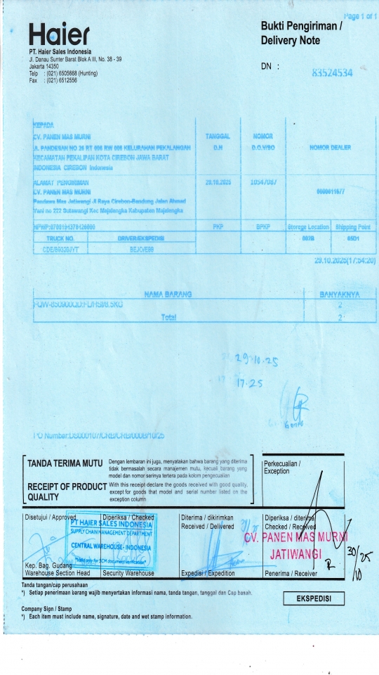 | Penerima | NURHAYATI - HAIER CIREBON |