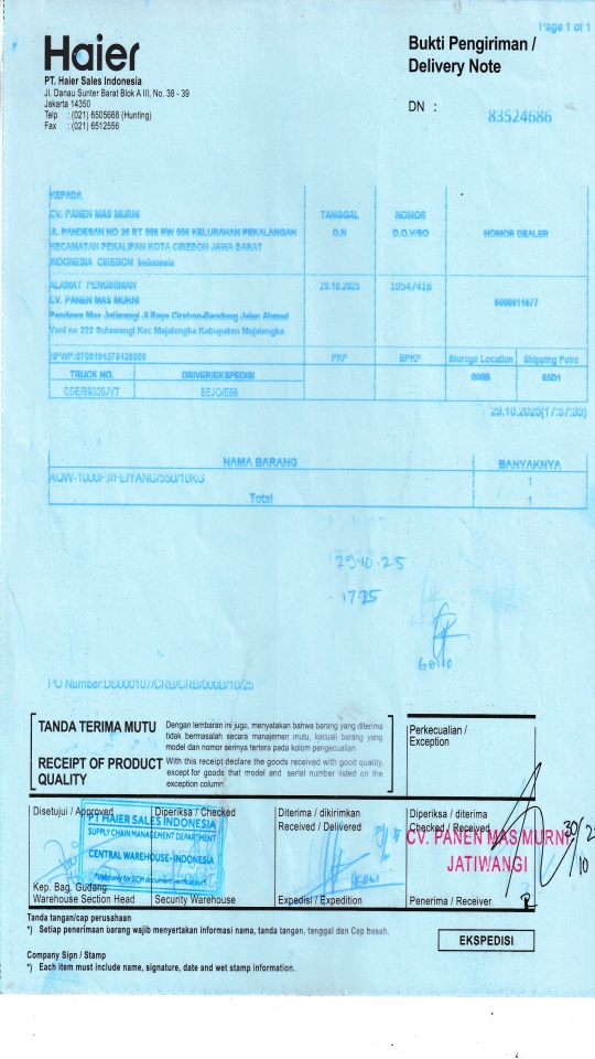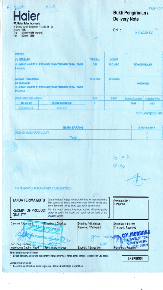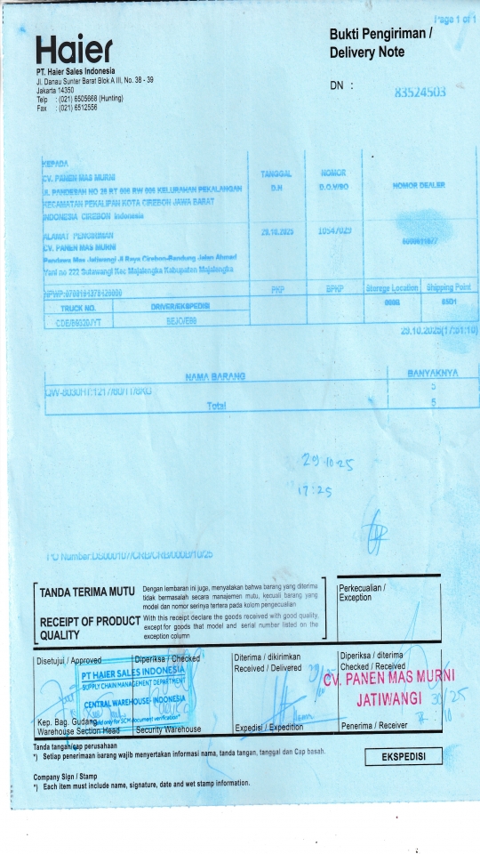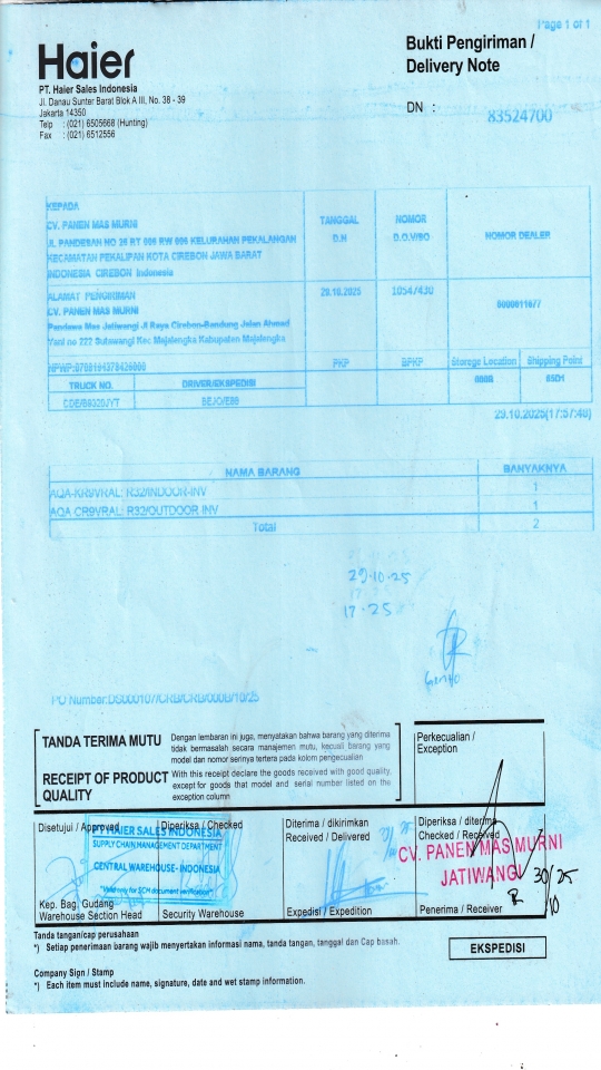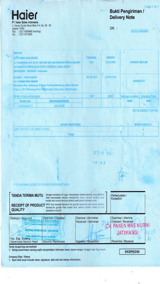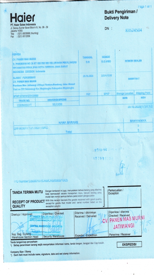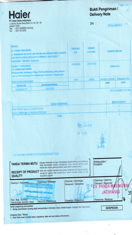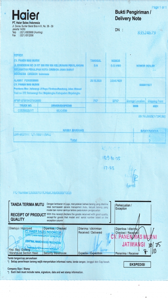 | Penerima | NURHAYATI - HAIER CIREBON |
