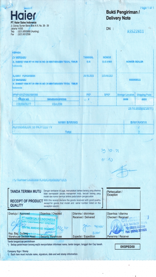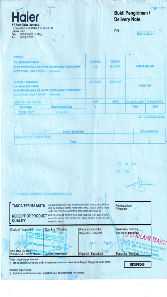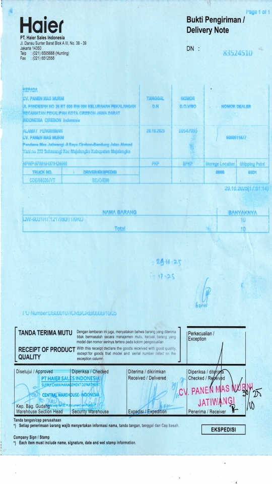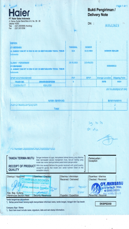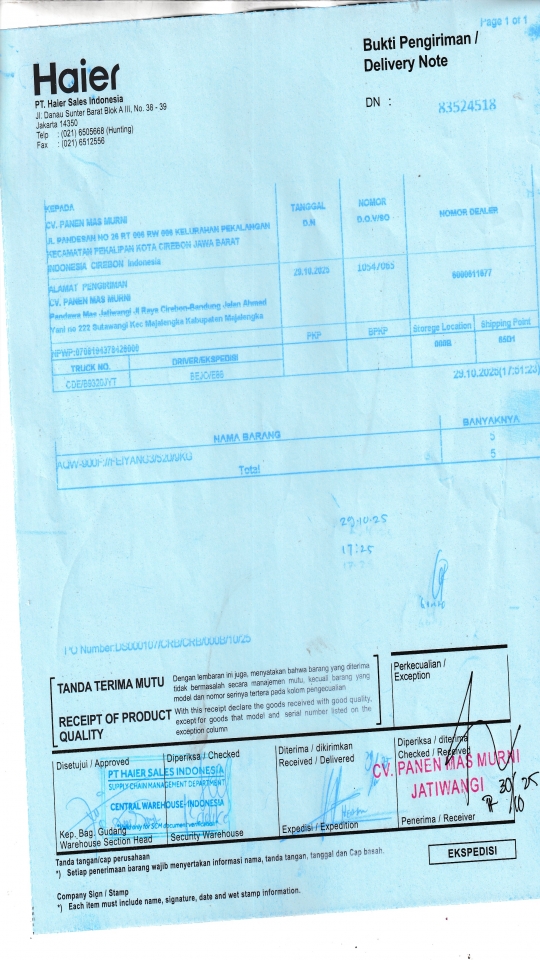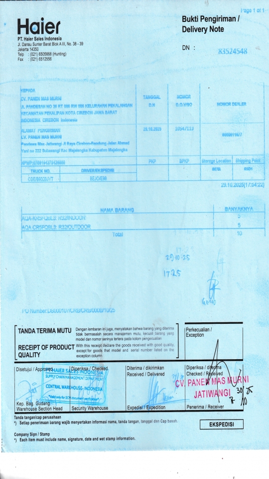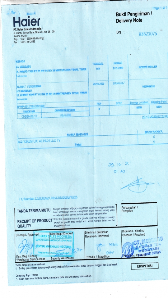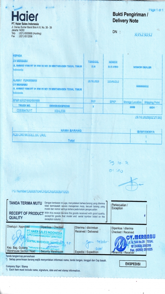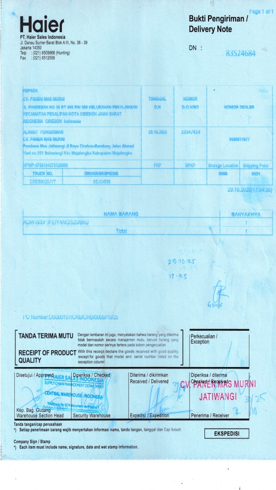 | Penerima | NURHAYATI - HAIER CIREBON |