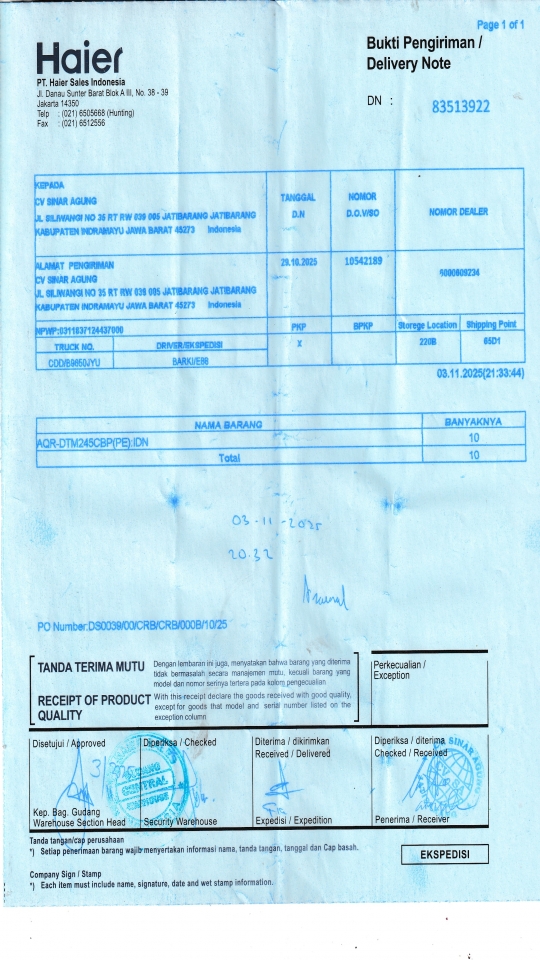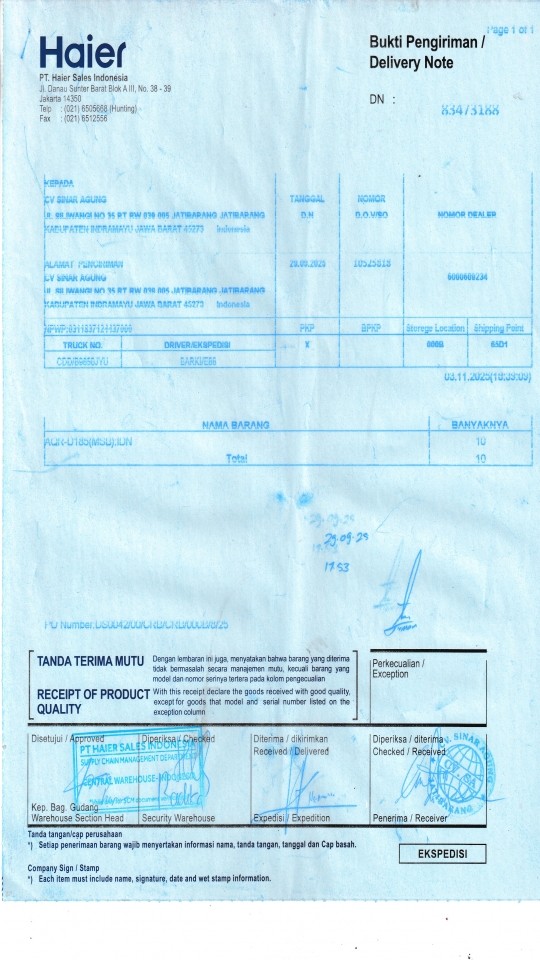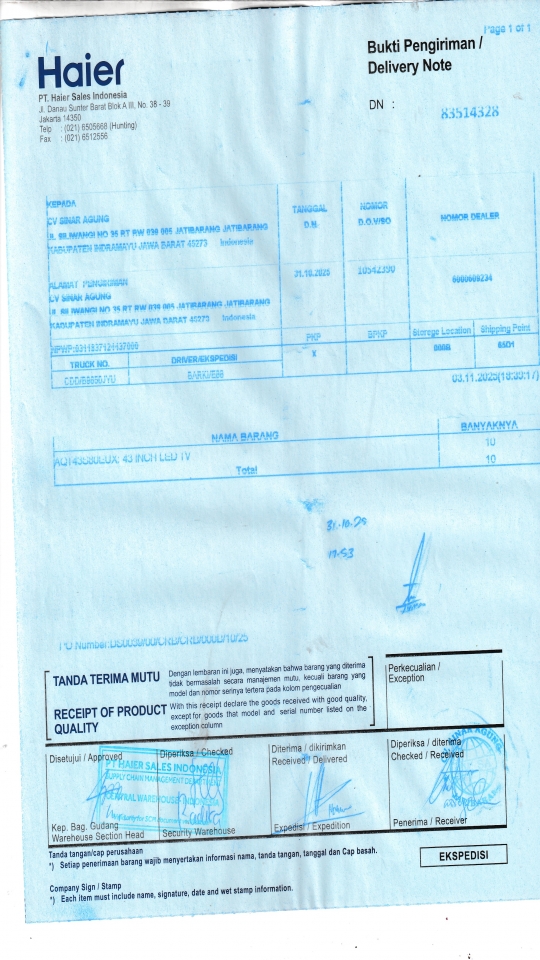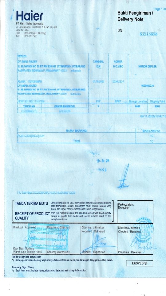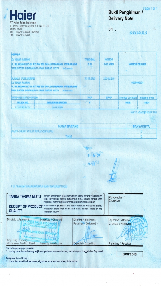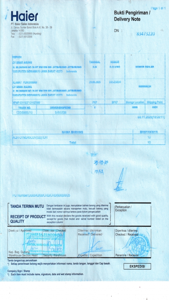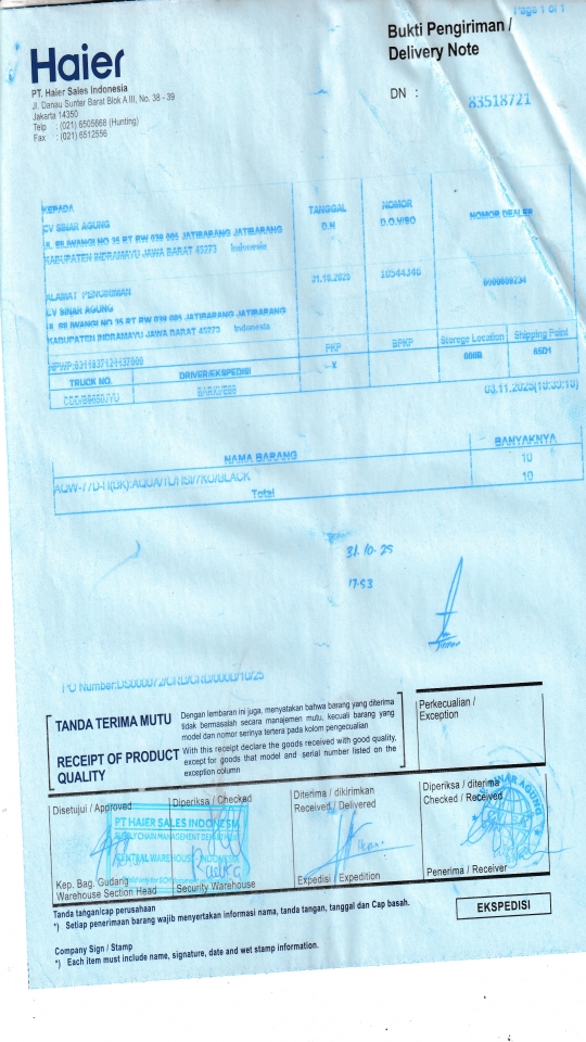 | Penerima | NURHAYATI - HAIER CIREBON |