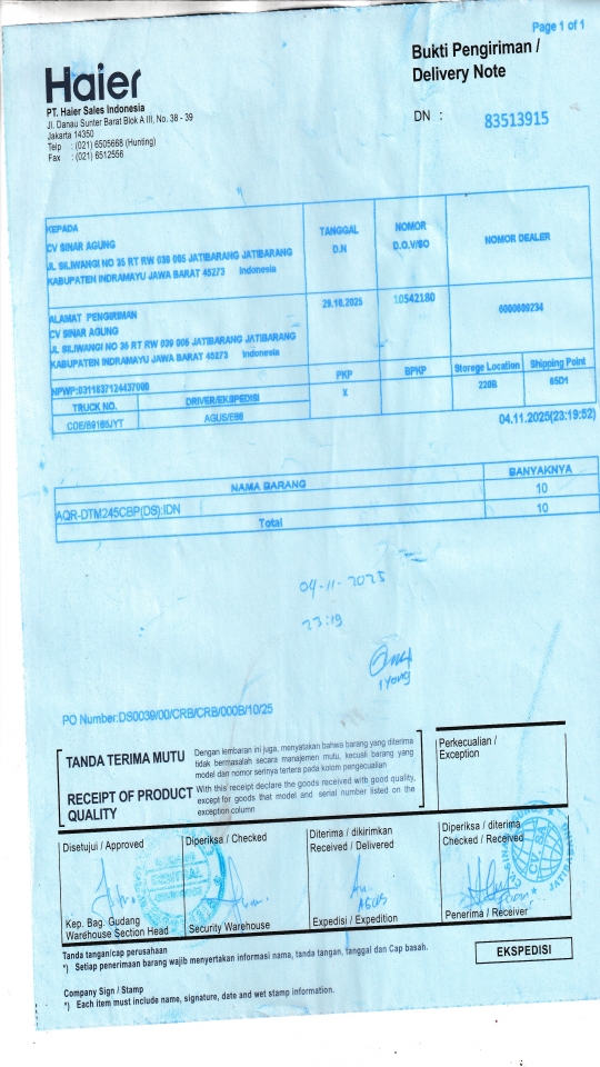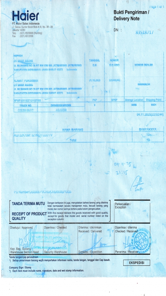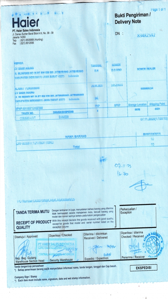 | Penerima | NURHAYATI - HAIER CIREBON |