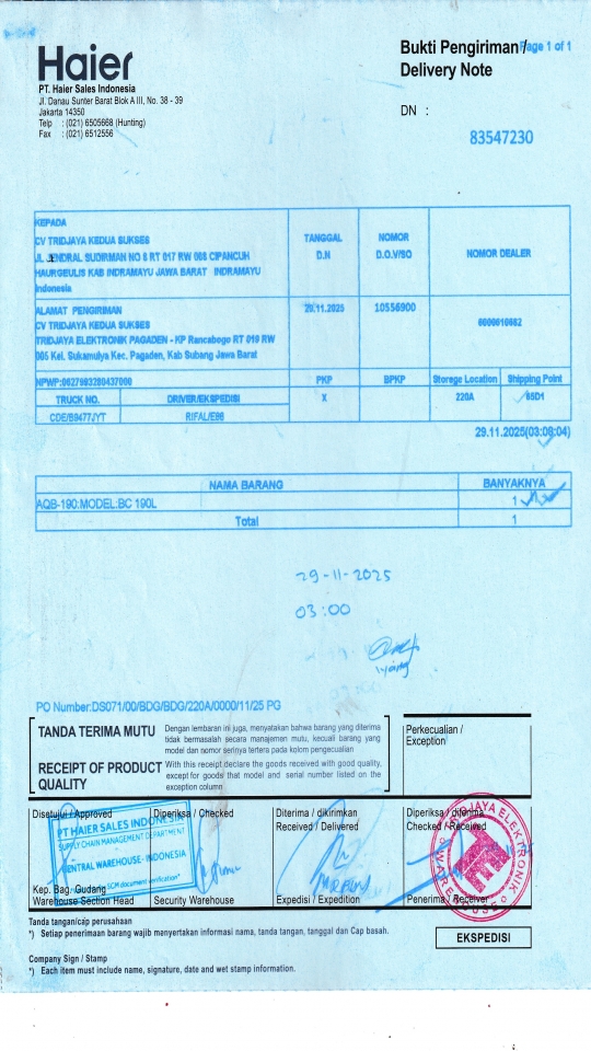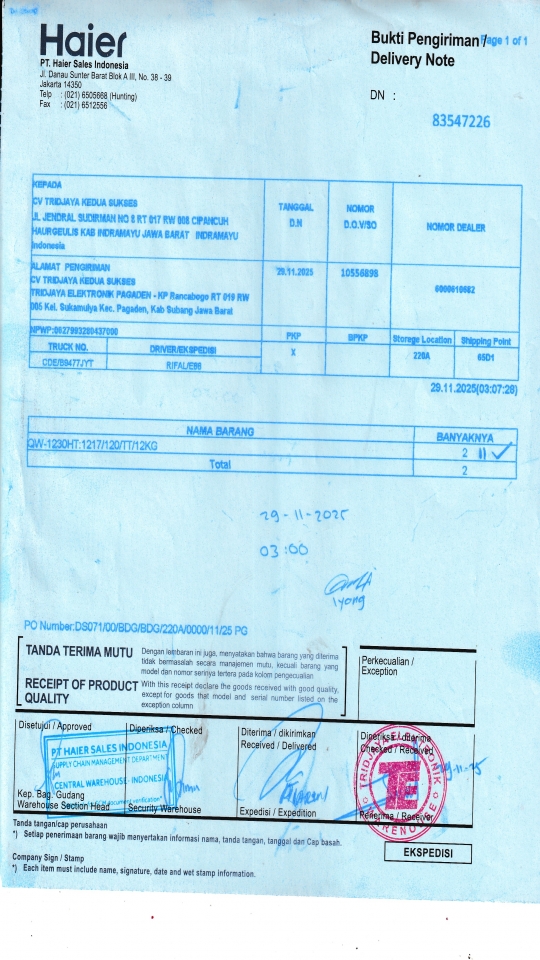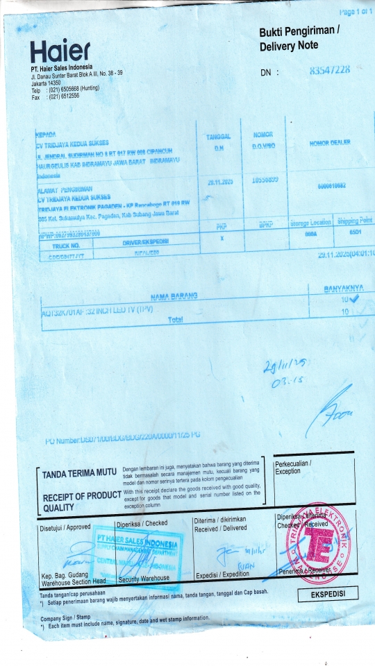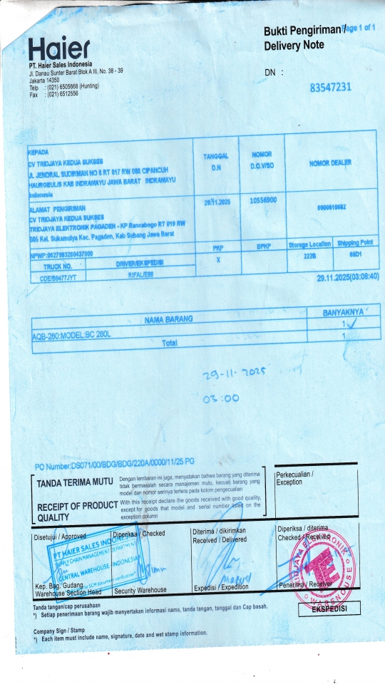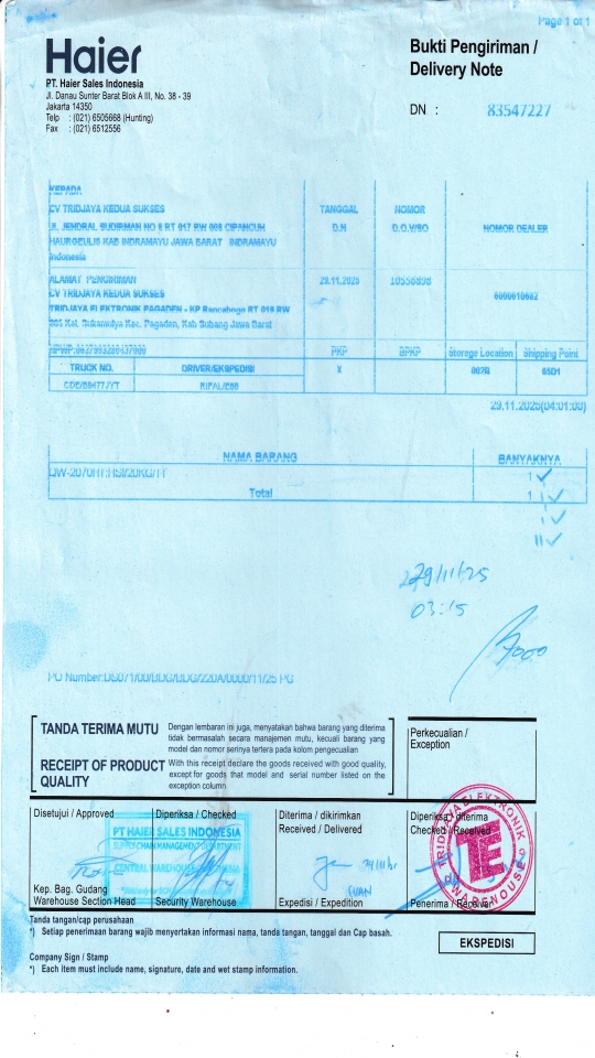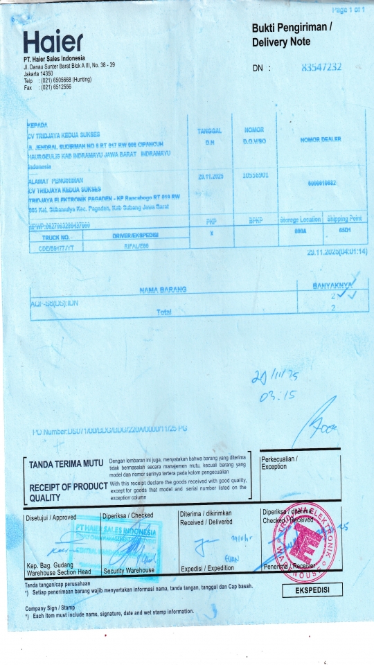 | Penerima | LUSY AMANDA - HAIER BANDUNG |