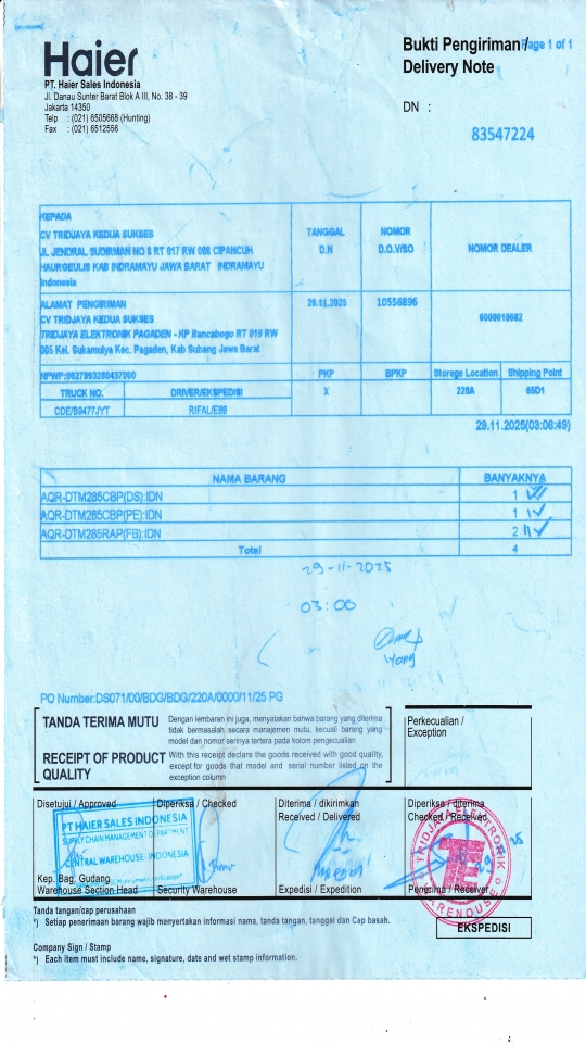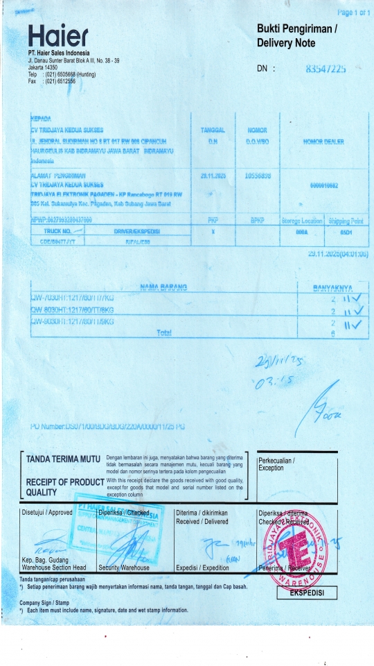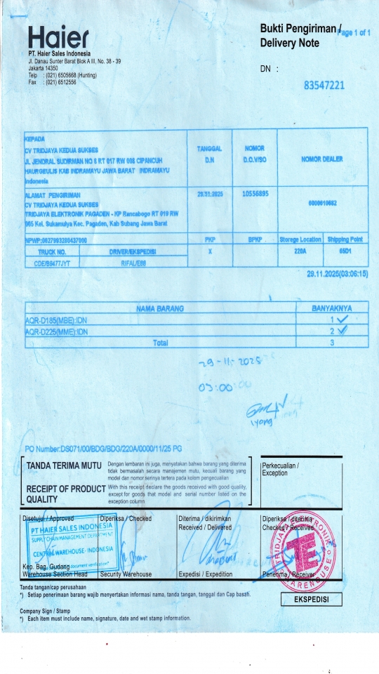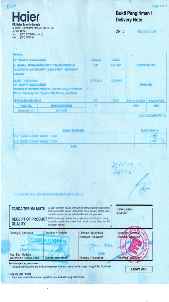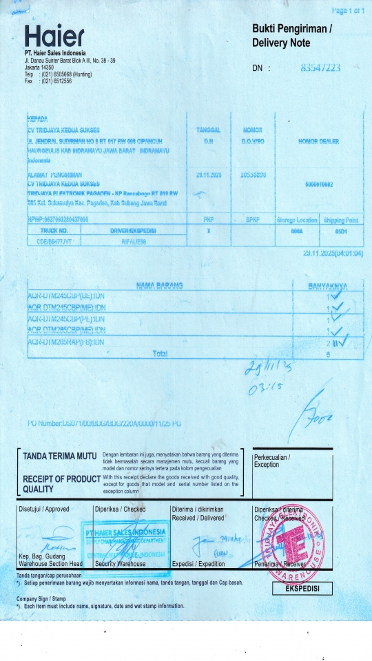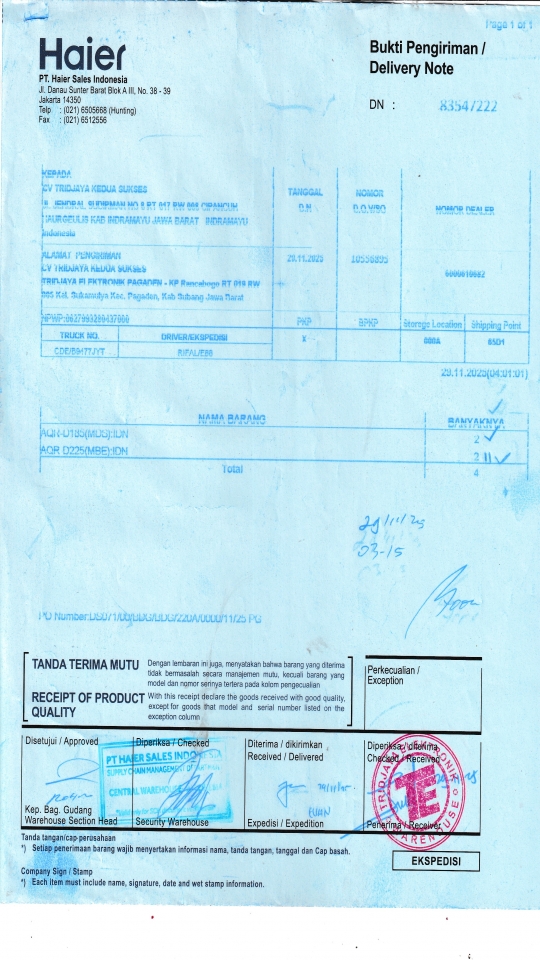 | Penerima | LUSY AMANDA - HAIER BANDUNG |