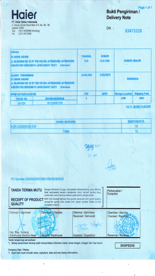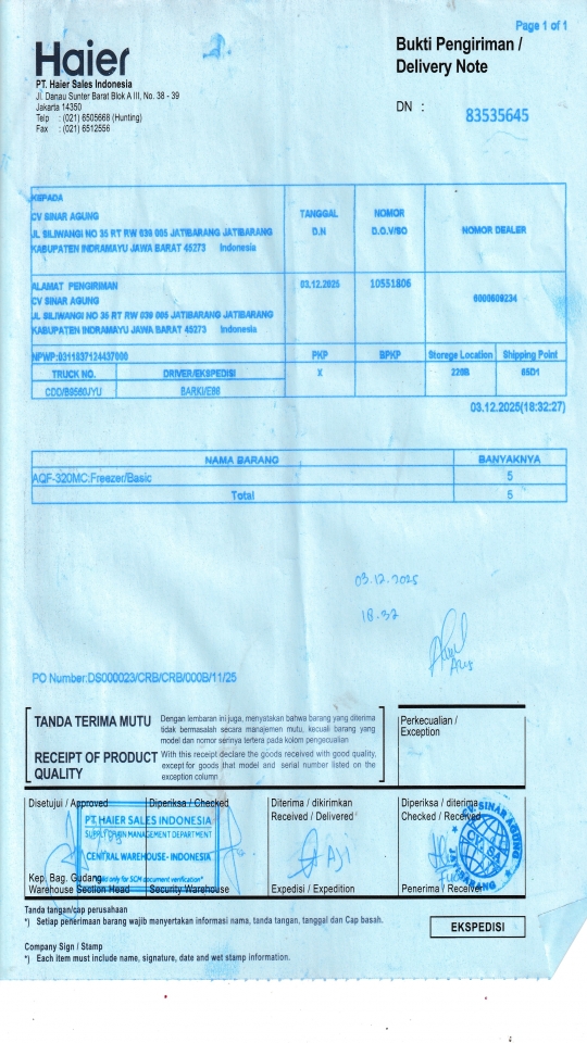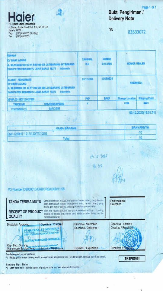| Penerima | NURHAYATI - HAIER CIREBON |