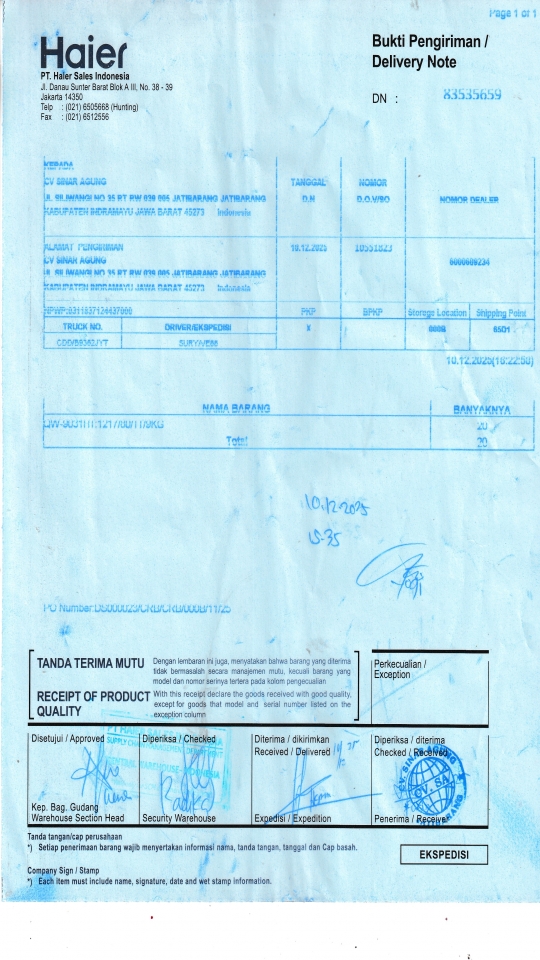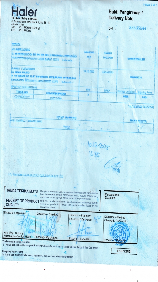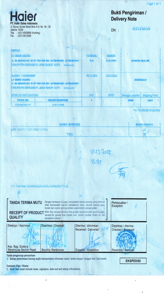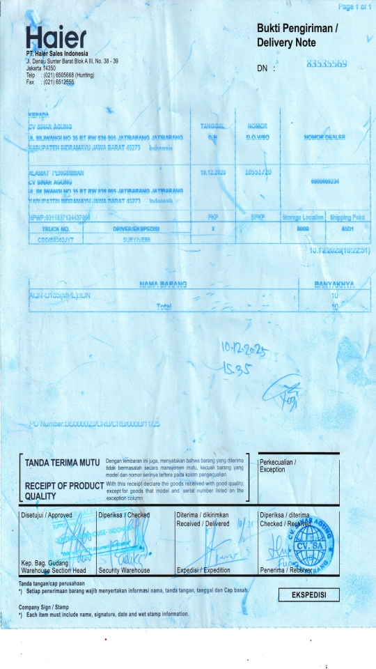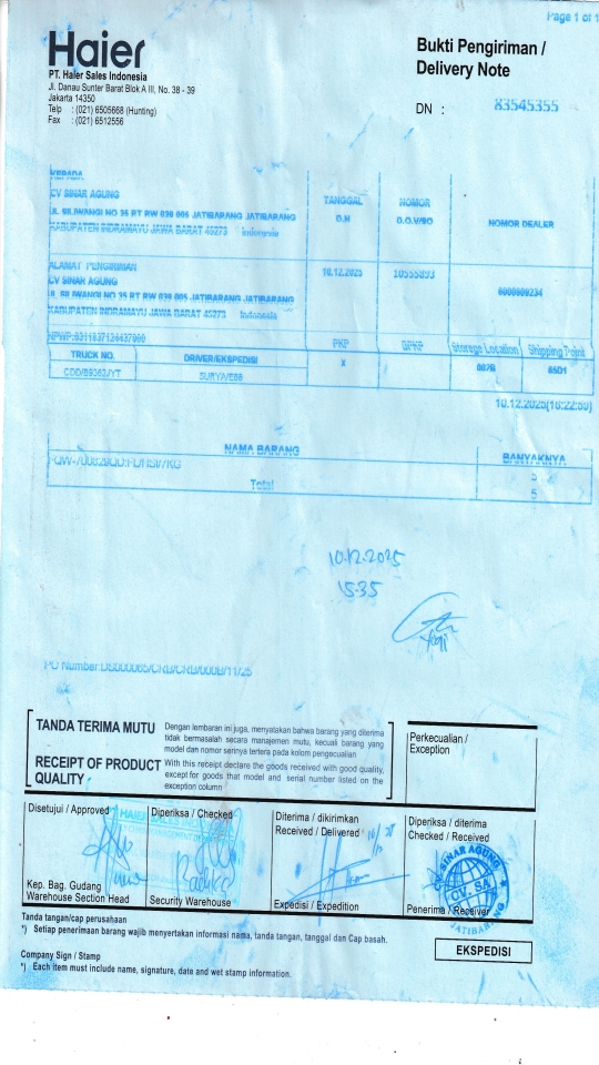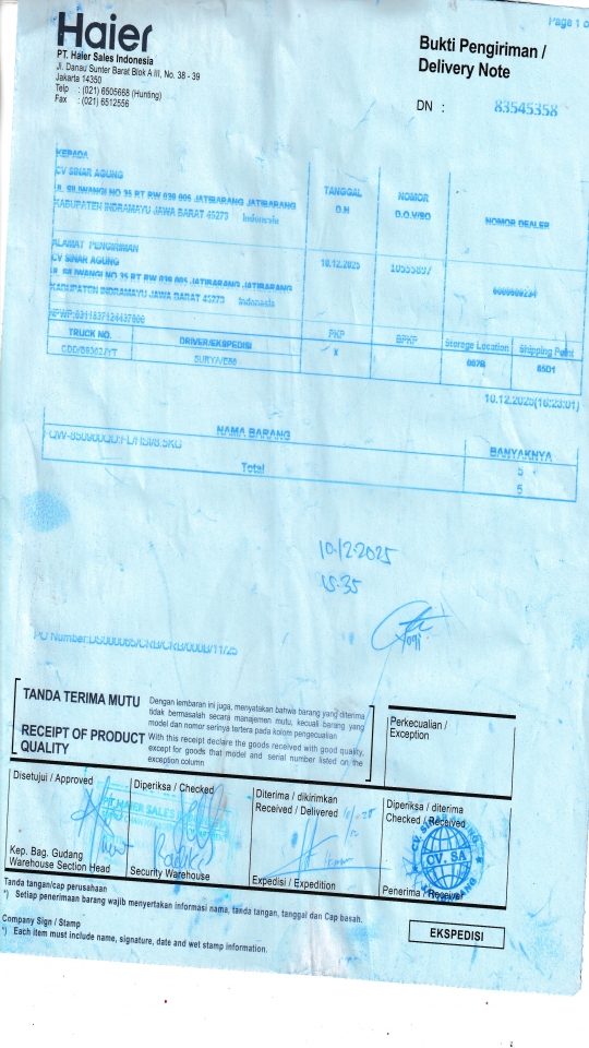 | Penerima | NURHAYATI - HAIER CIREBON |