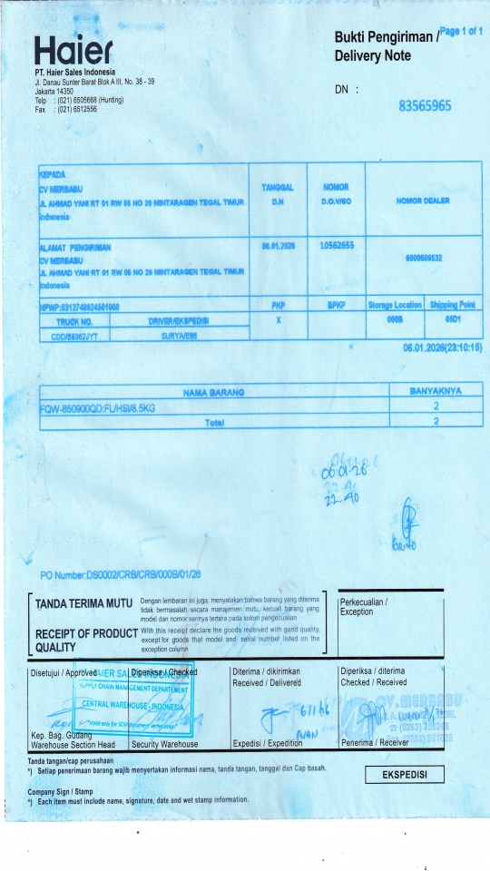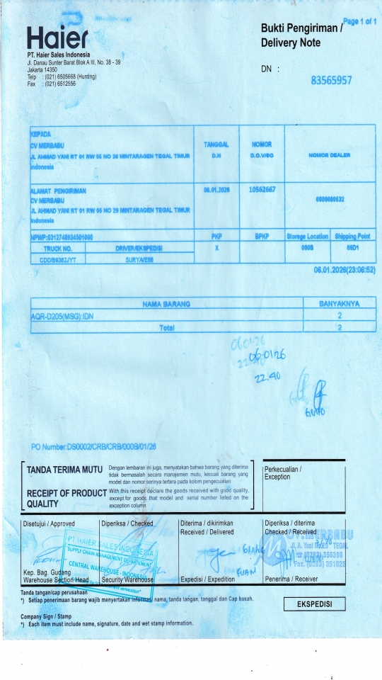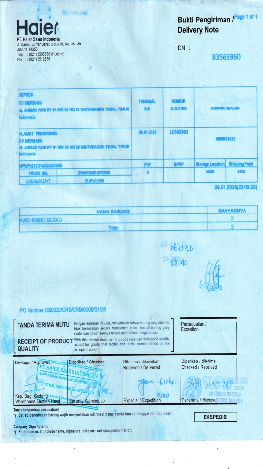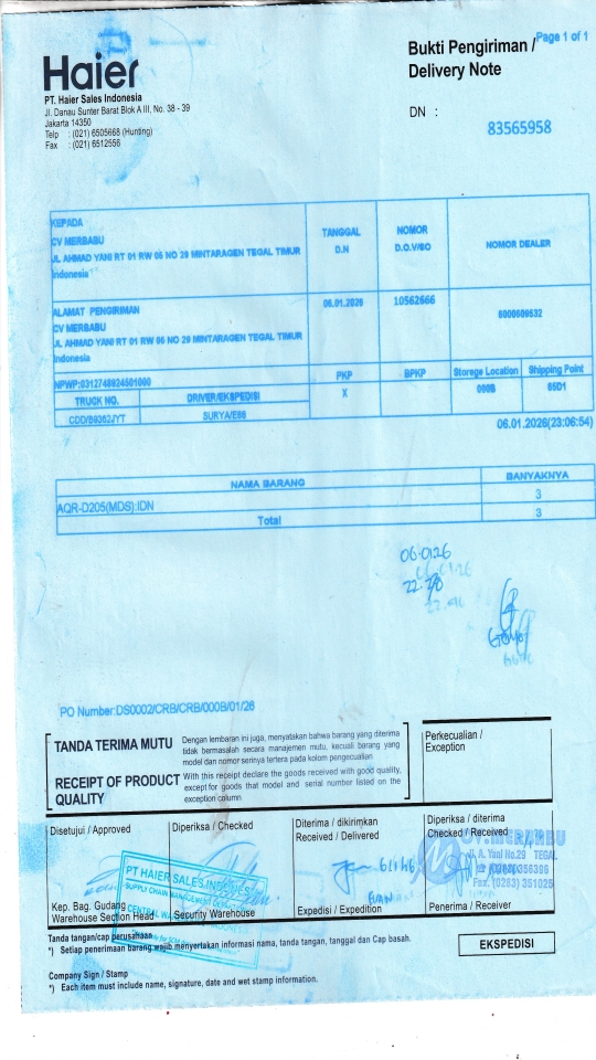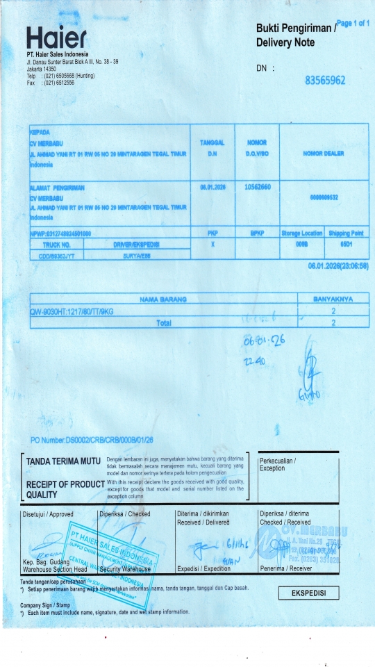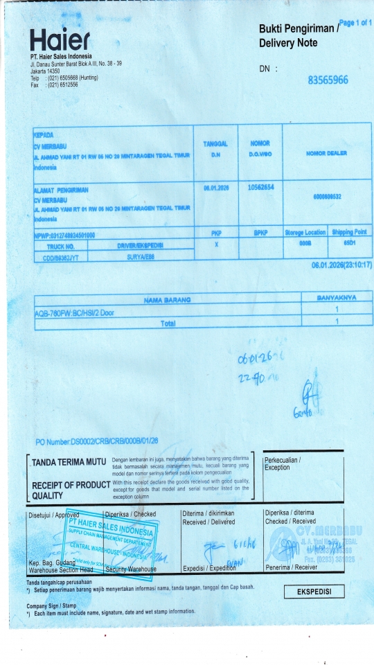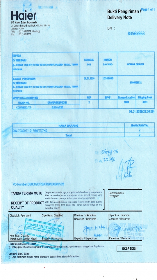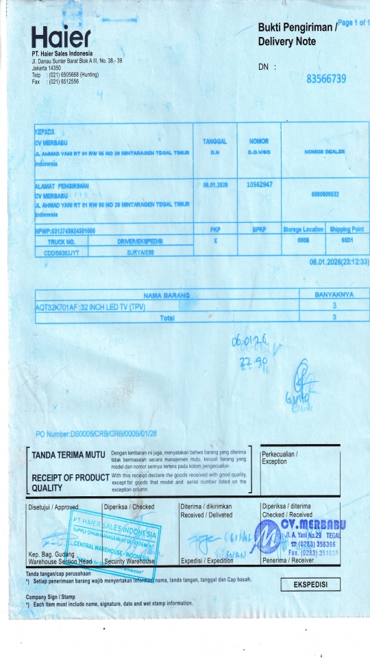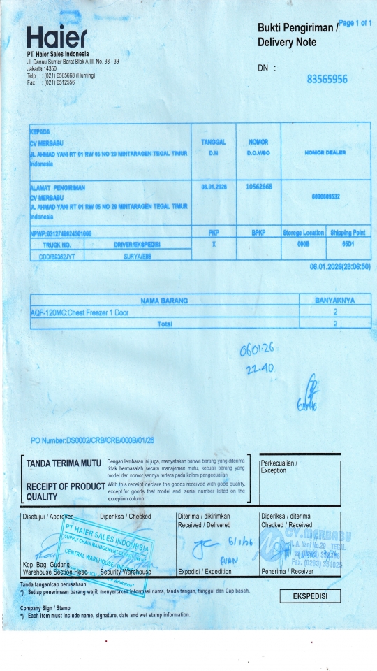 | Penerima | NURHAYATI - HAIER CIREBON |