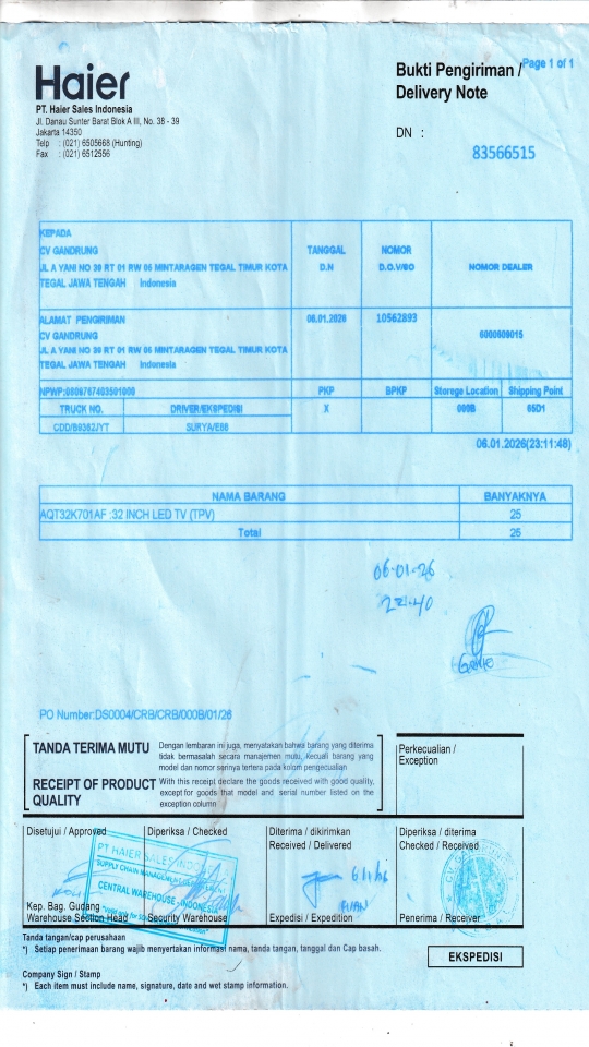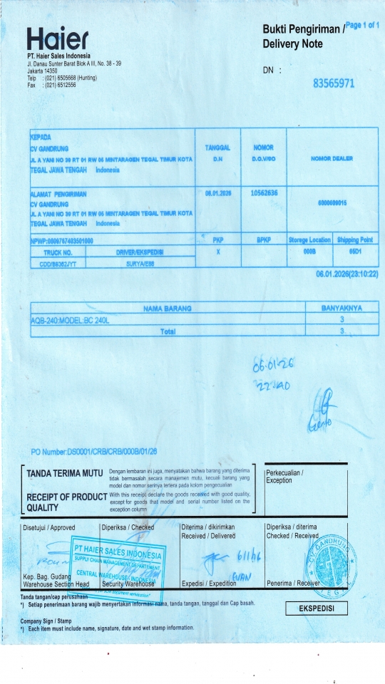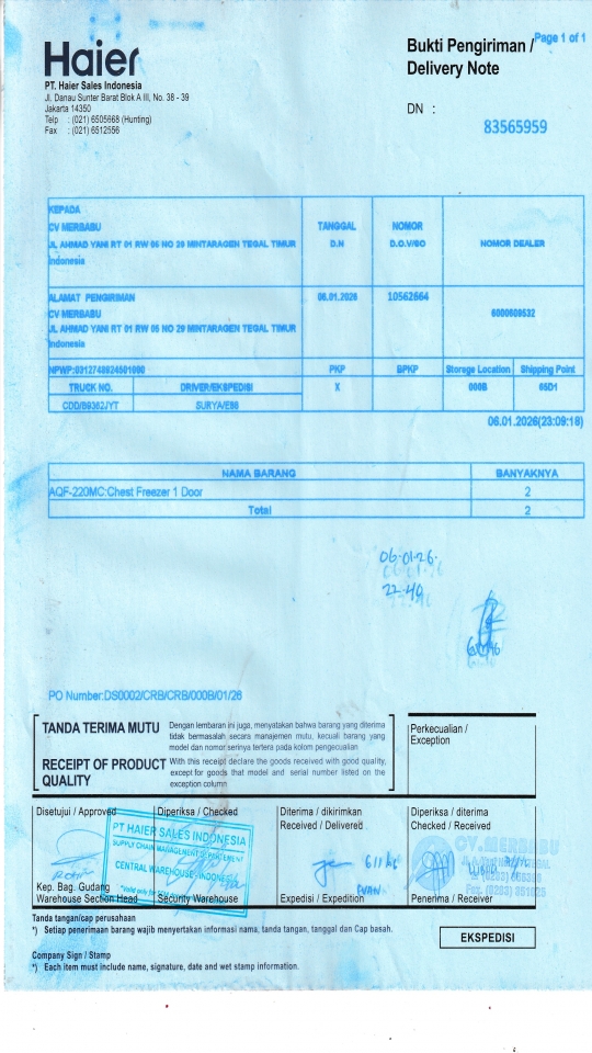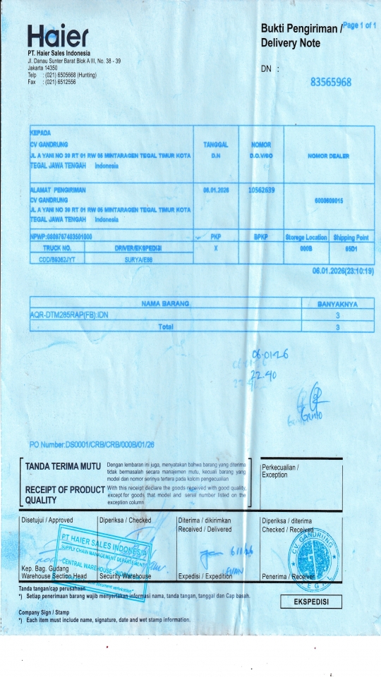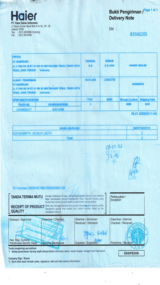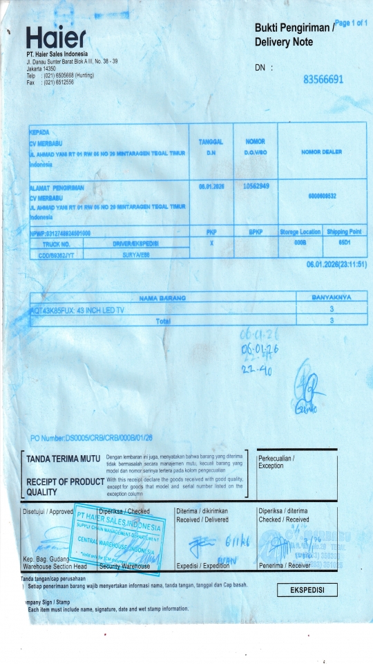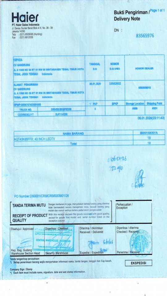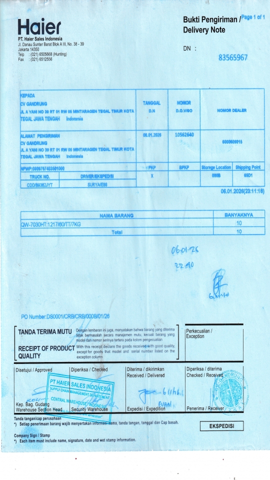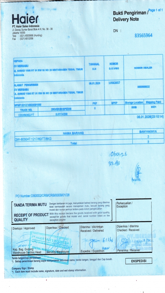 | Penerima | NURHAYATI - HAIER CIREBON |