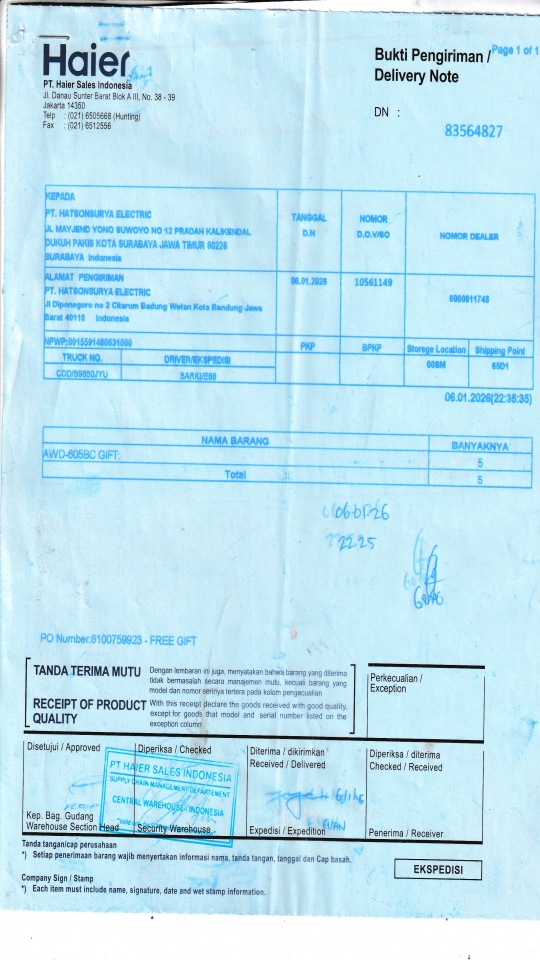 | Penerima | RENY WIDYA - HAIER SURABAYA |