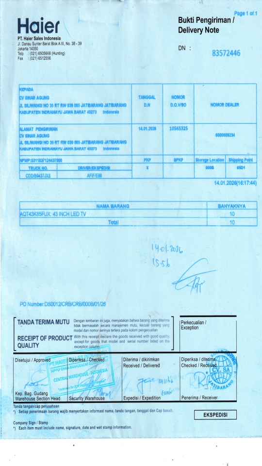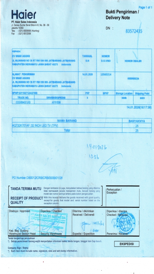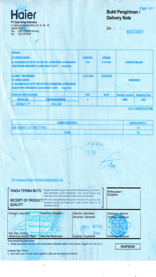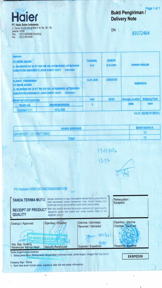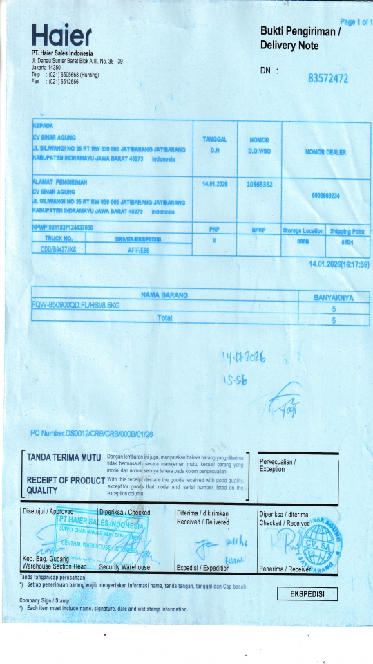 | Penerima | NURHAYATI - HAIER CIREBON |