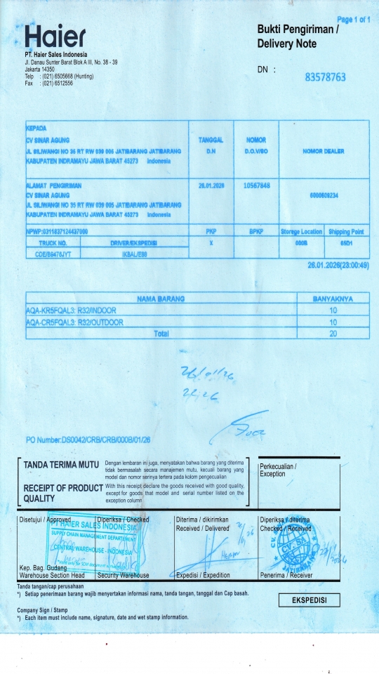 | Penerima | NURHAYATI - HAIER CIREBON |