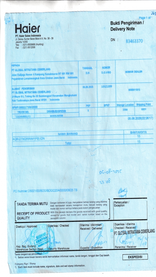 Berangkat, Tiba, Bongkar 2025-08-06, 2025-08-06, 2025-08-06
