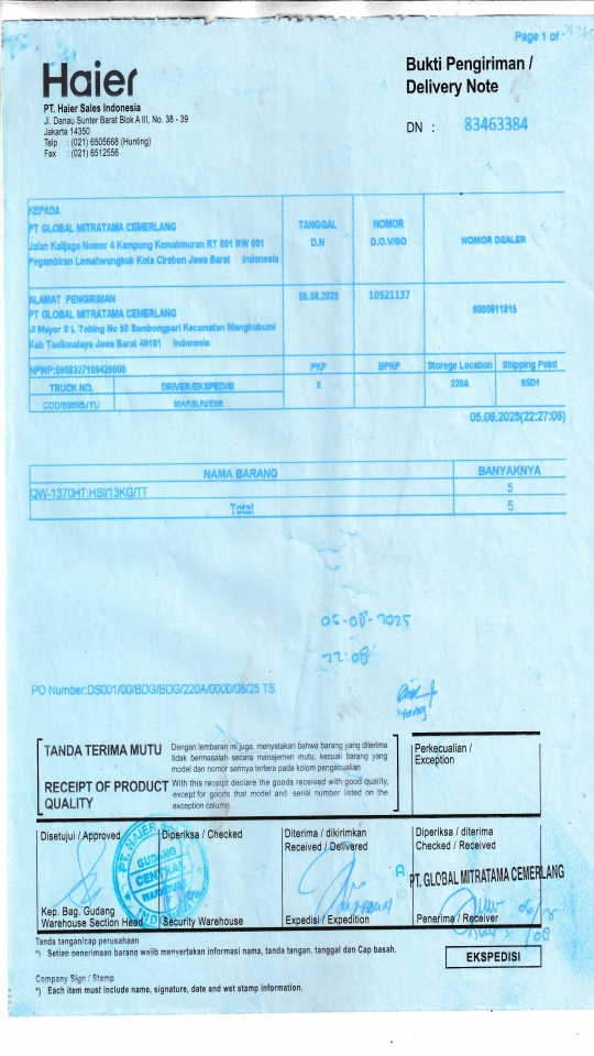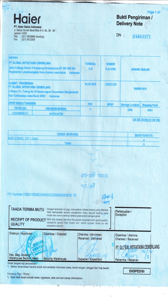 Customer PT. HAIER SALES INDONESIA